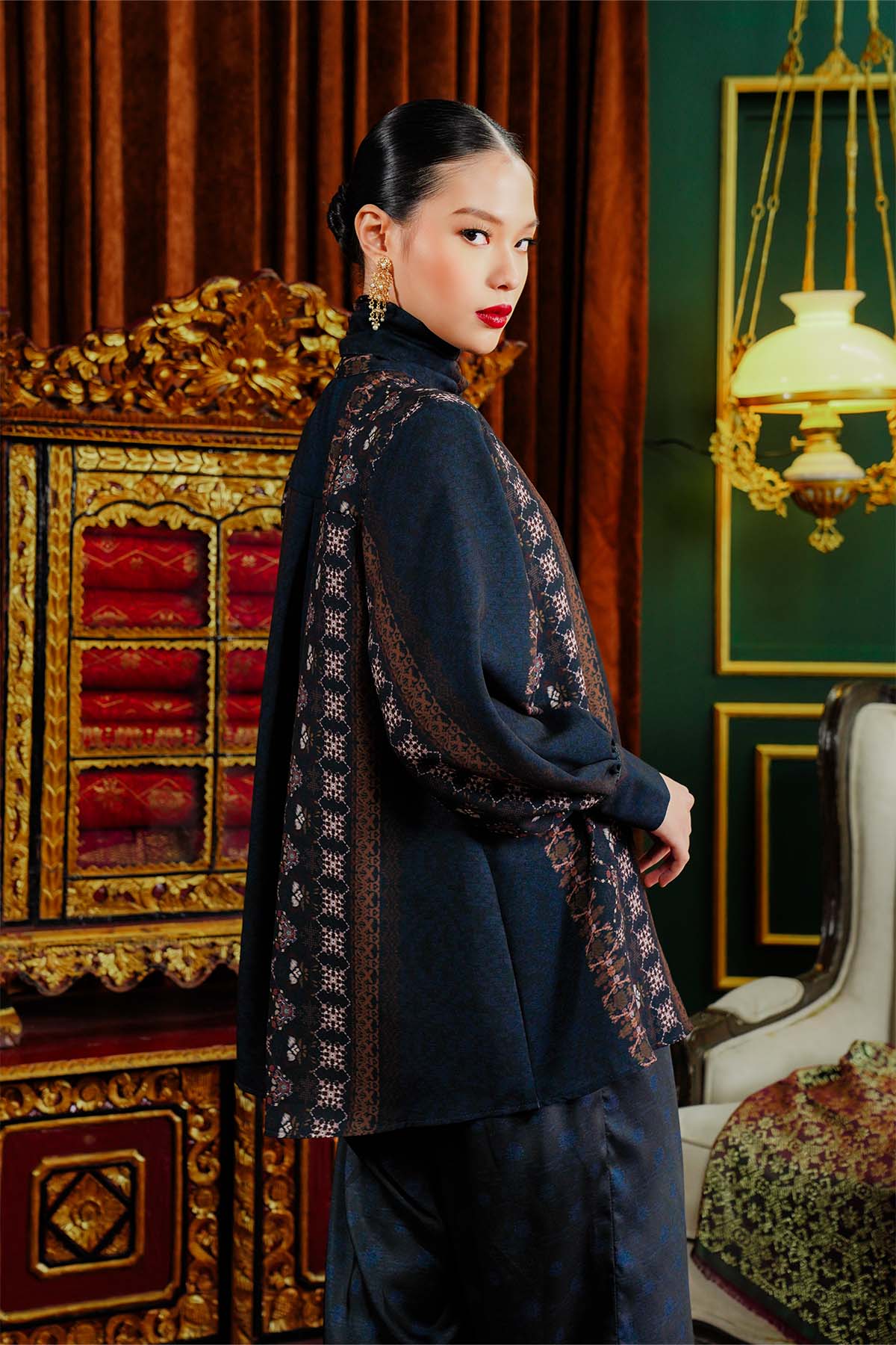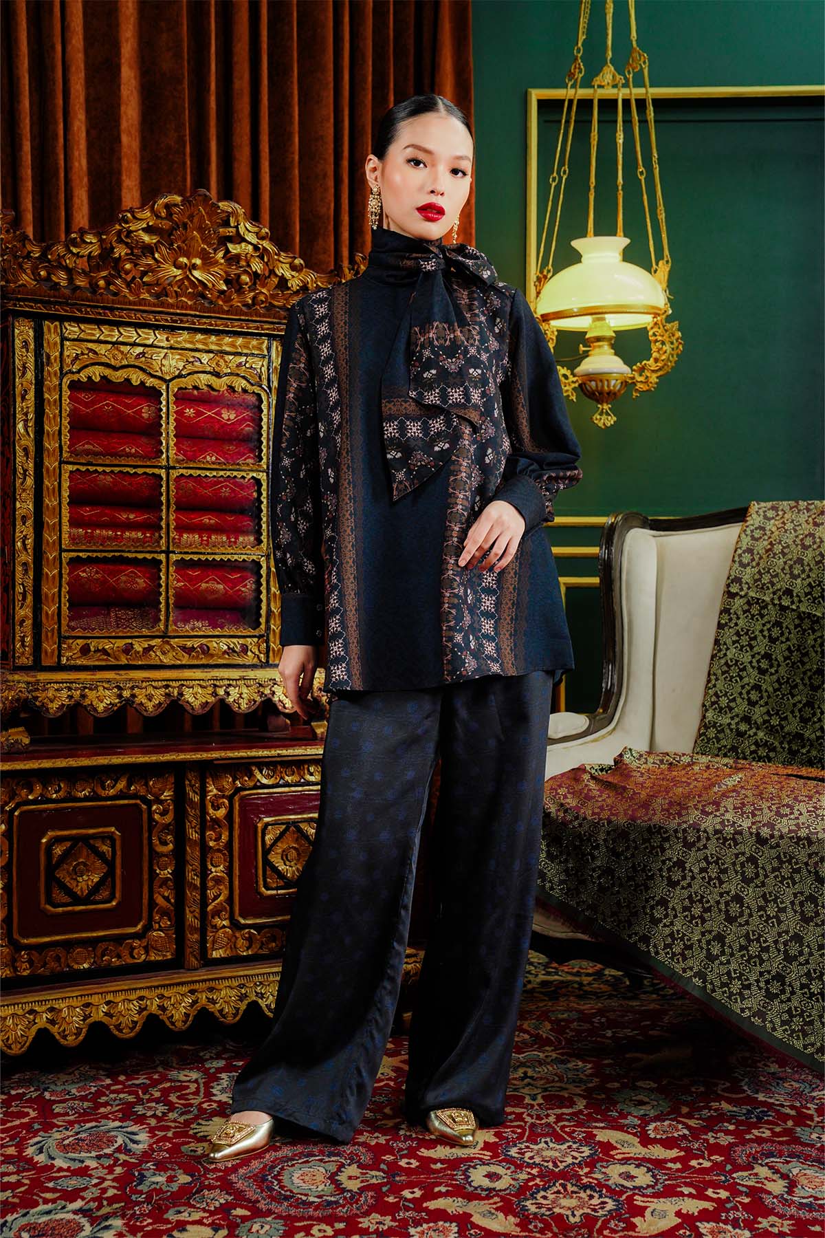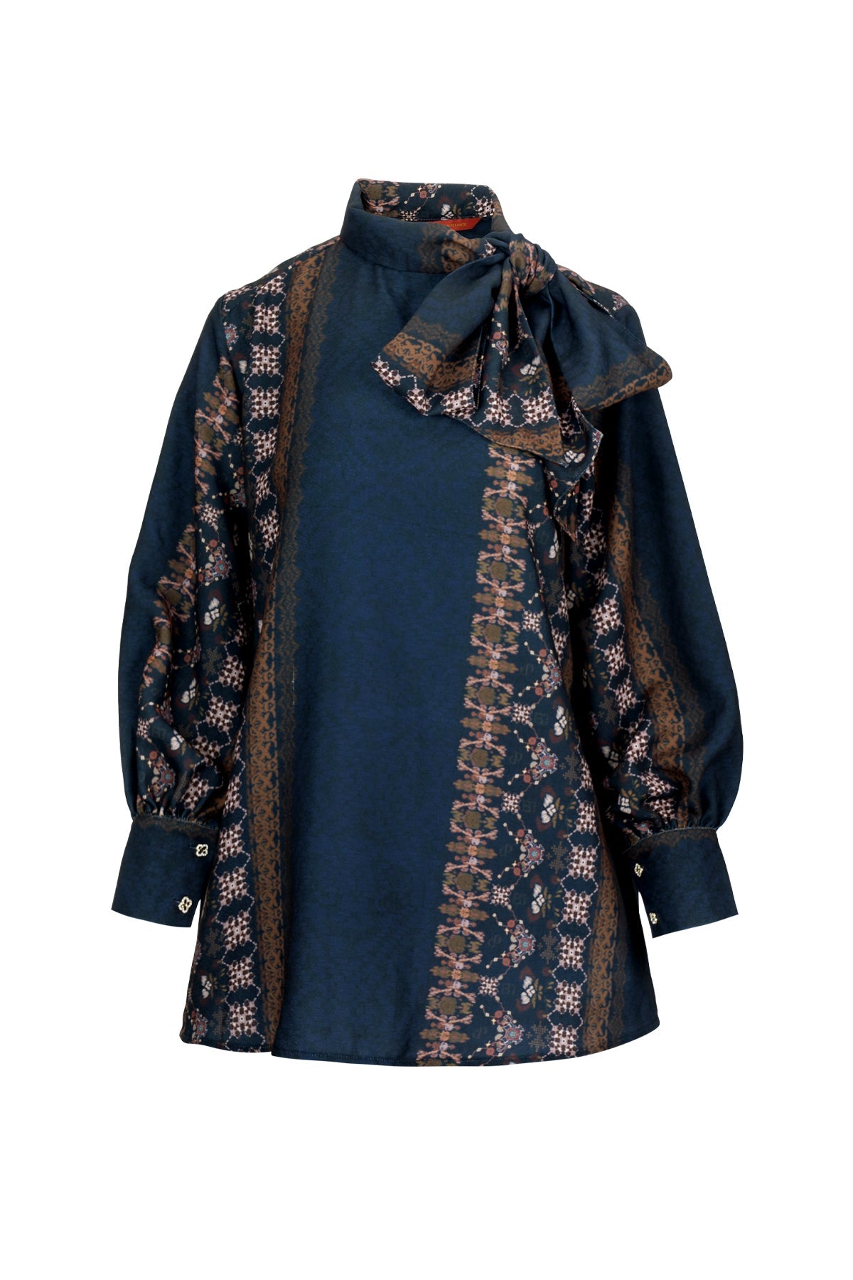 Benang Pelangi Teratai Blouse With Tied Bow - Navy