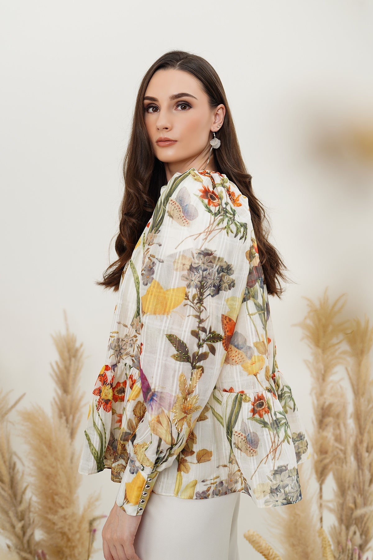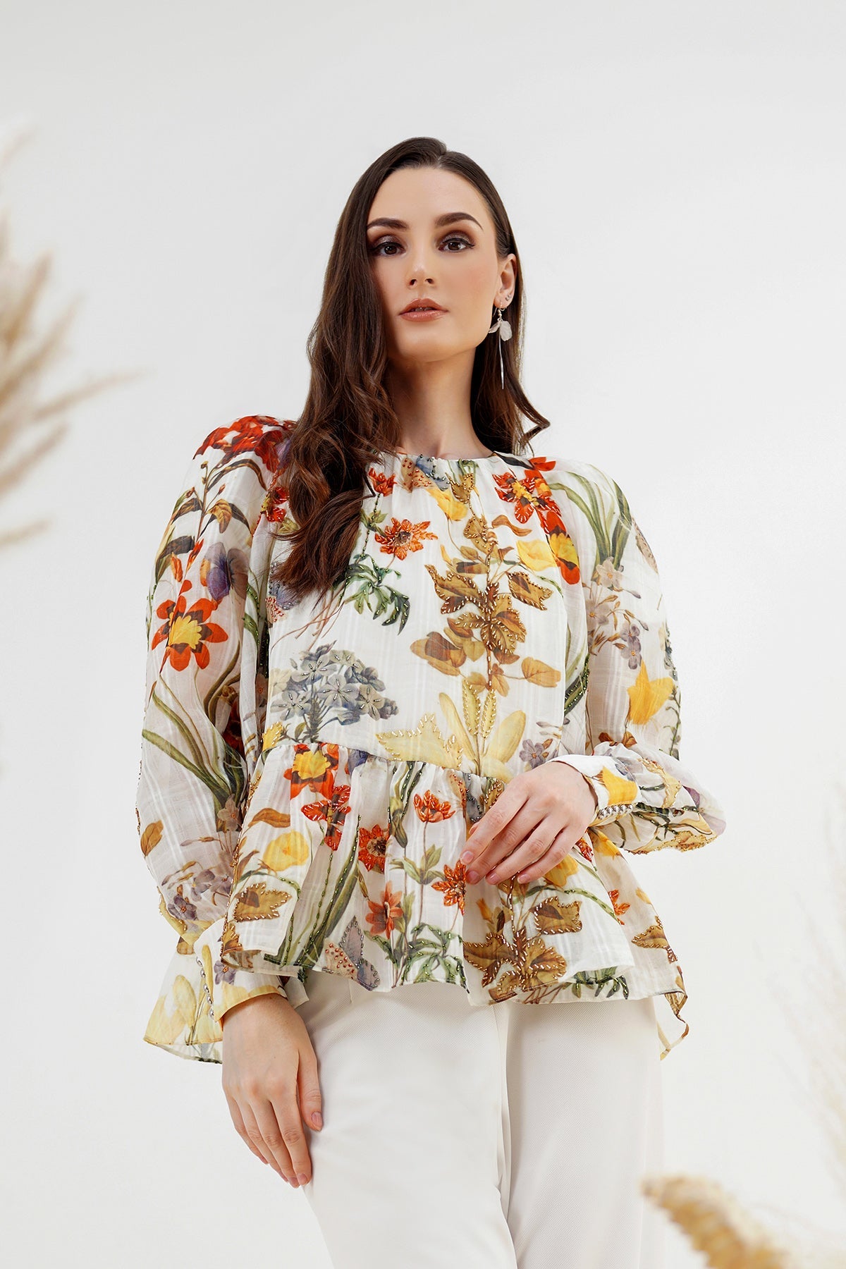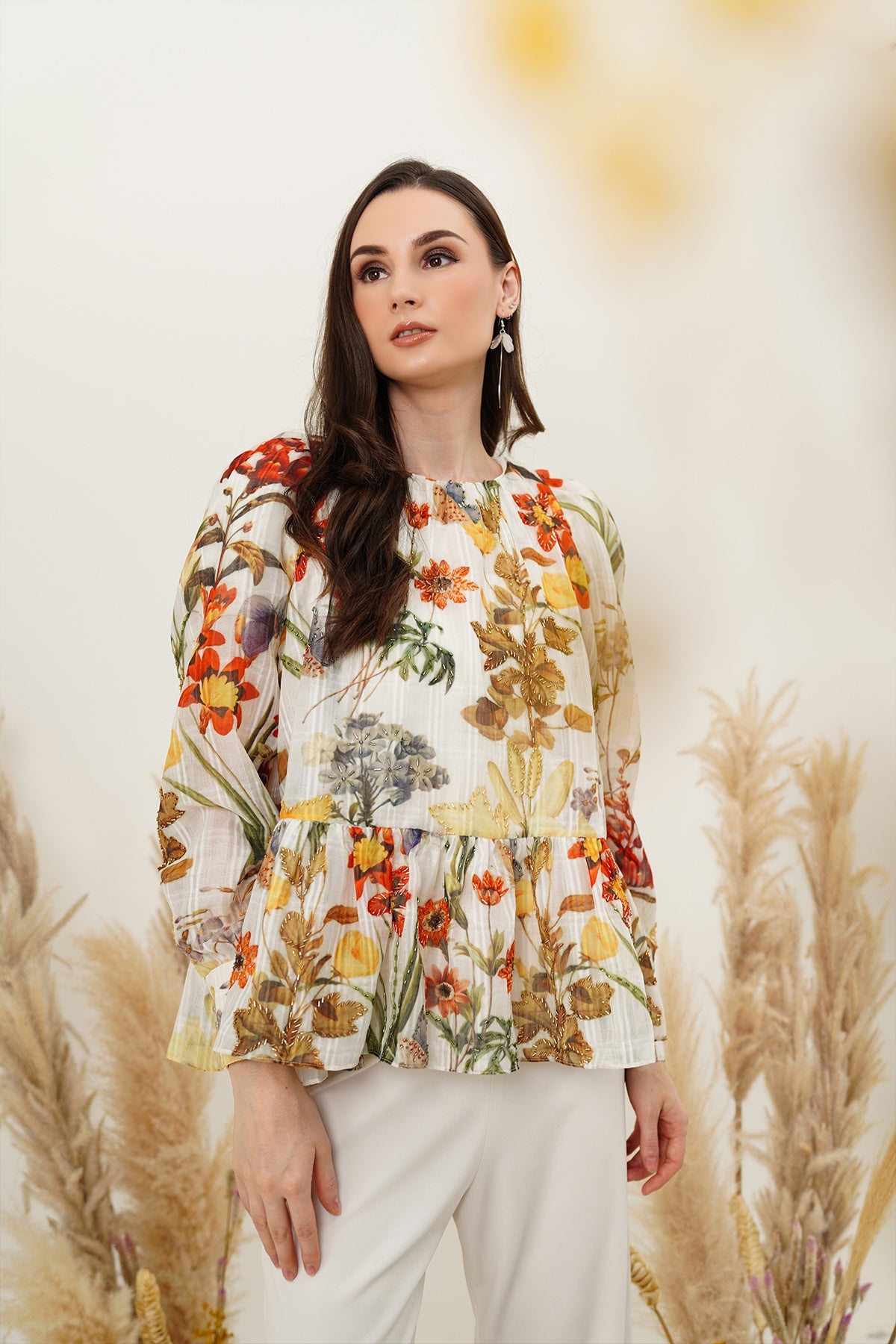 Flower Peplum Top - White