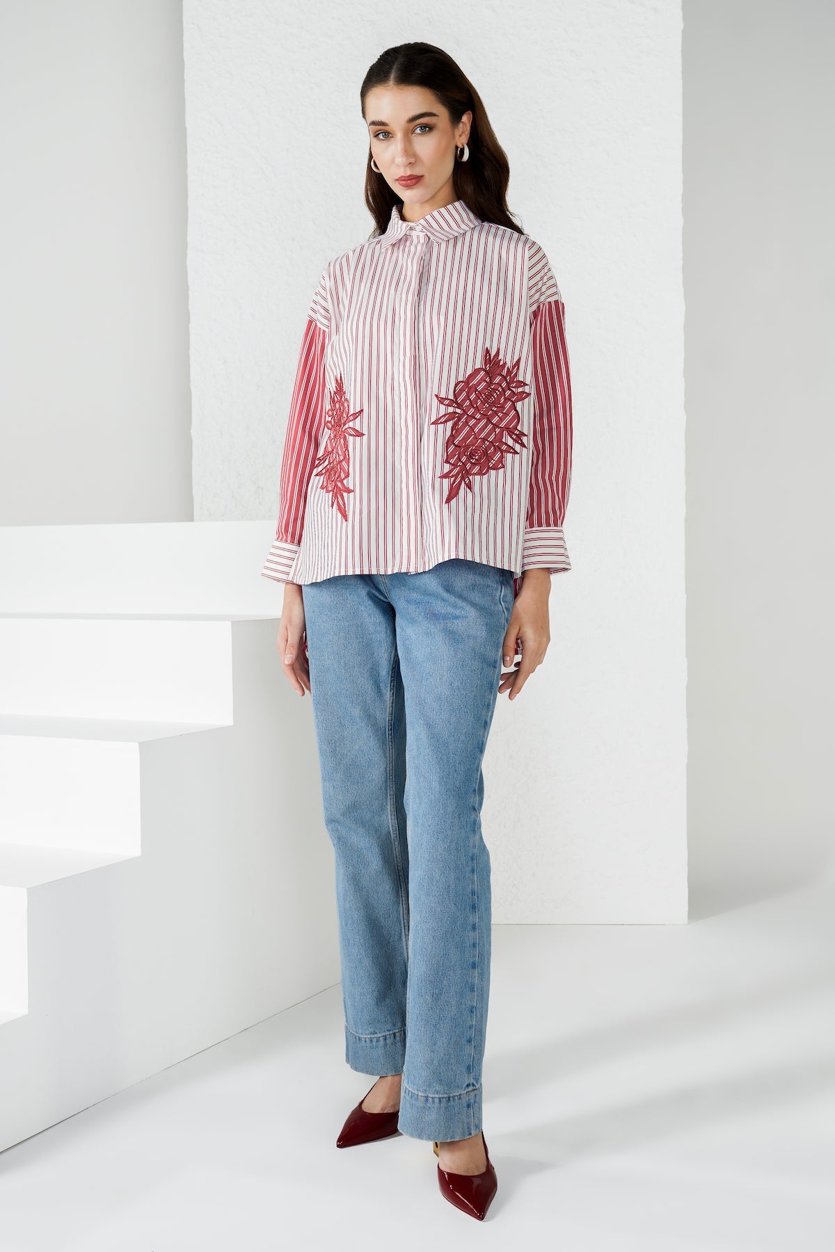 Jollie Embroidery Shirt - Red