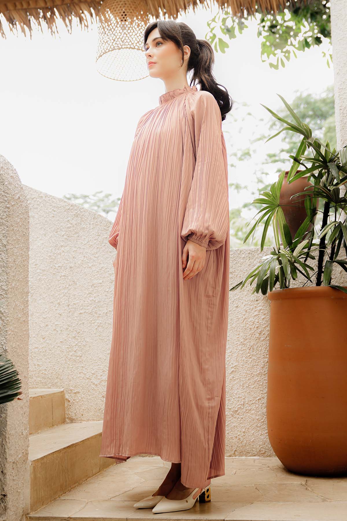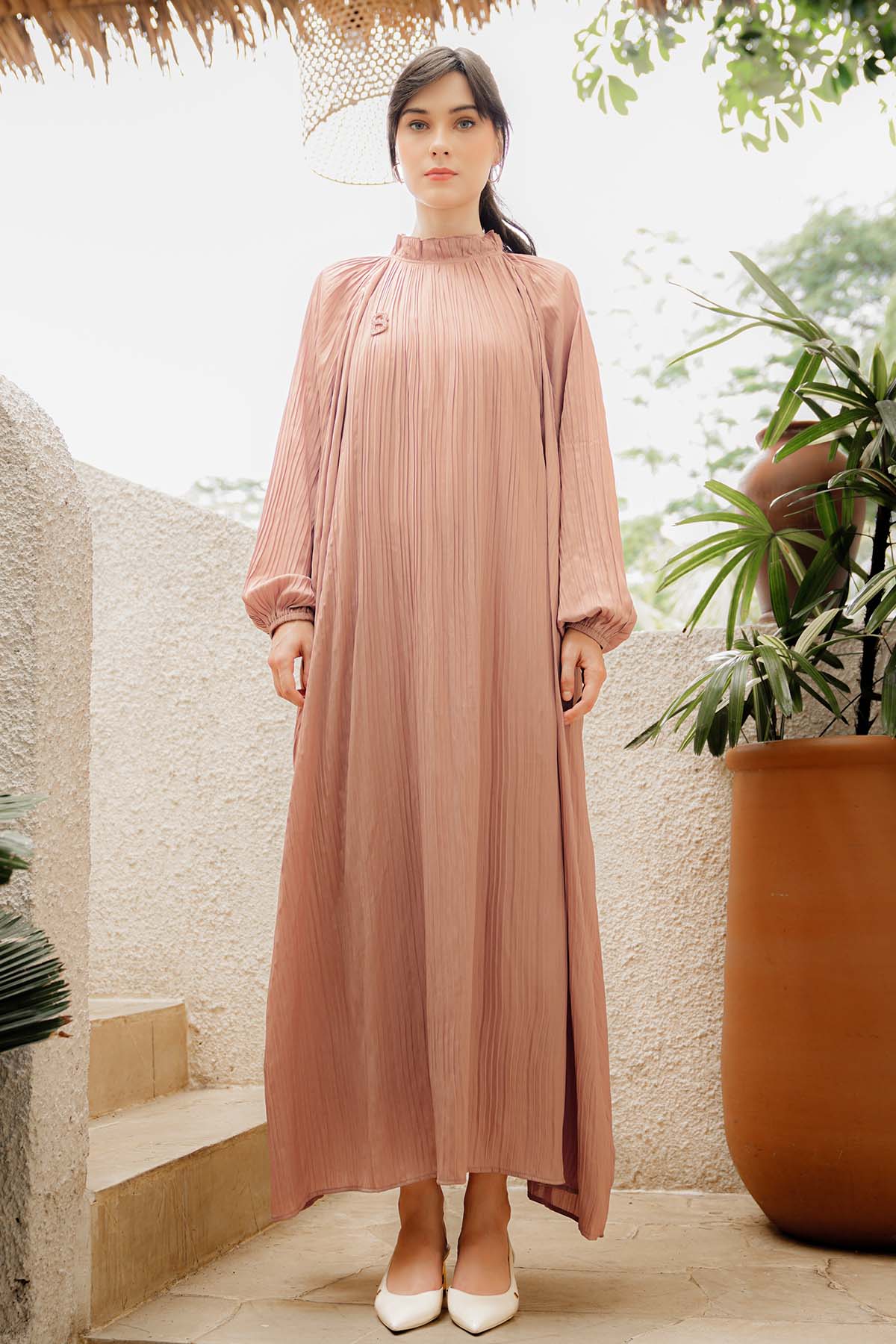 Pleated Long Dress - Dusty Pink