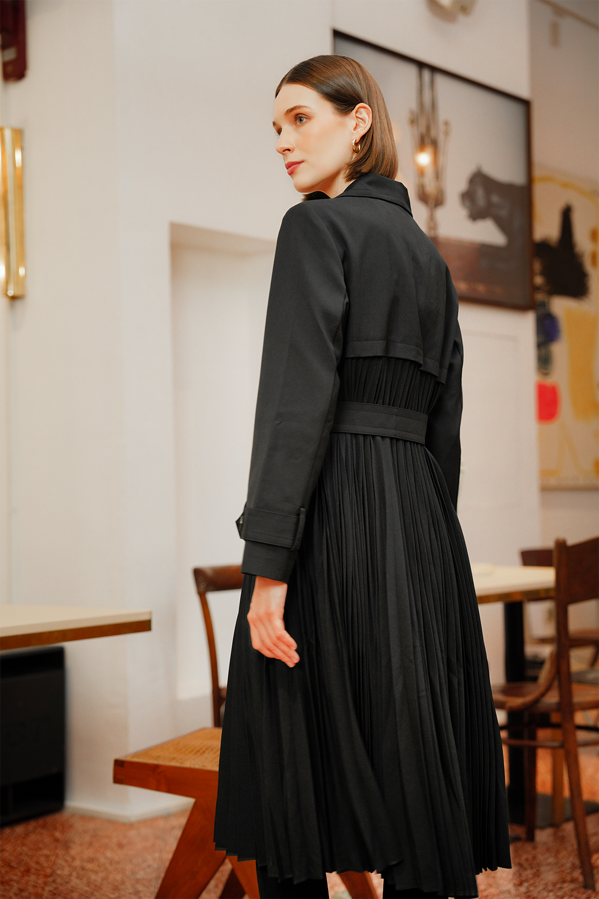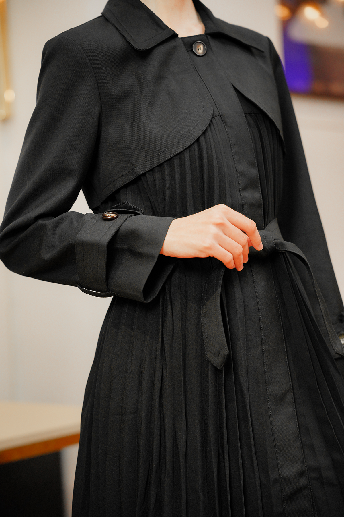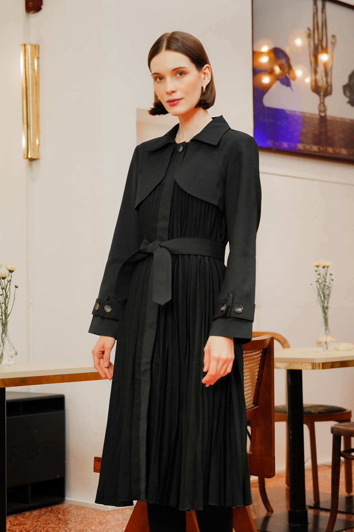 Rena Pleated Coat - Black