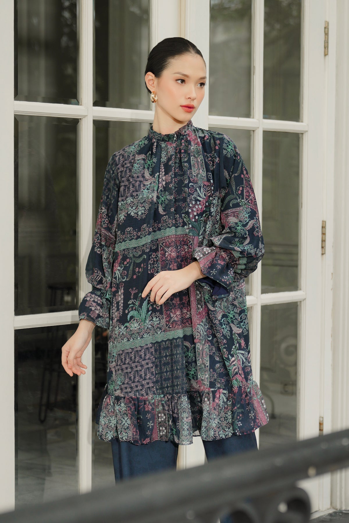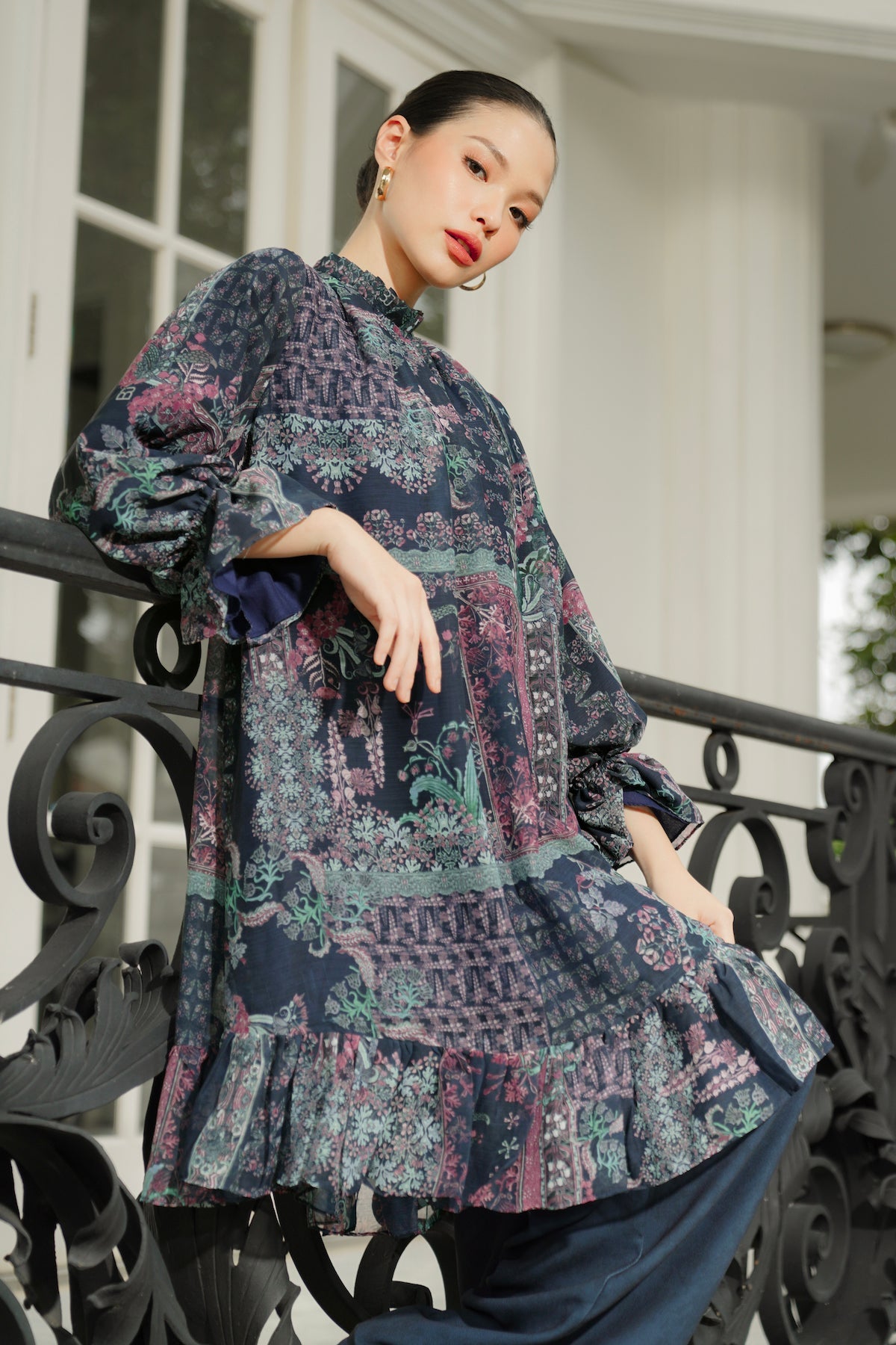Serenity Soiree Ruffle Tunic Dress - Midnight
