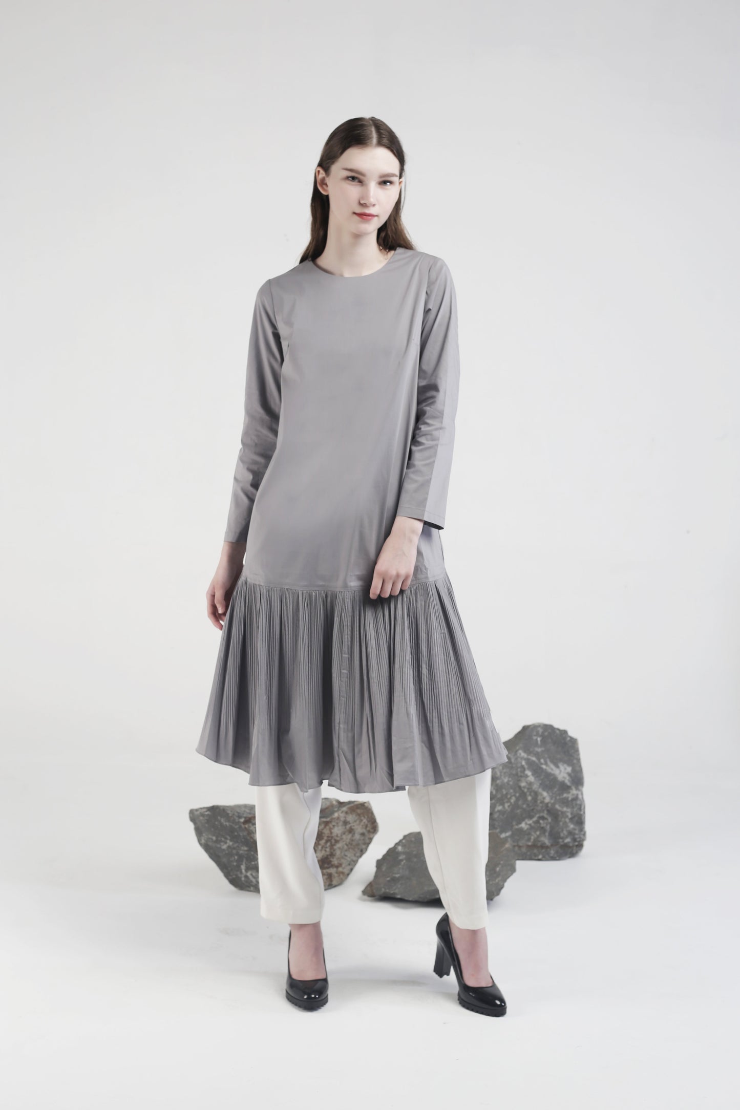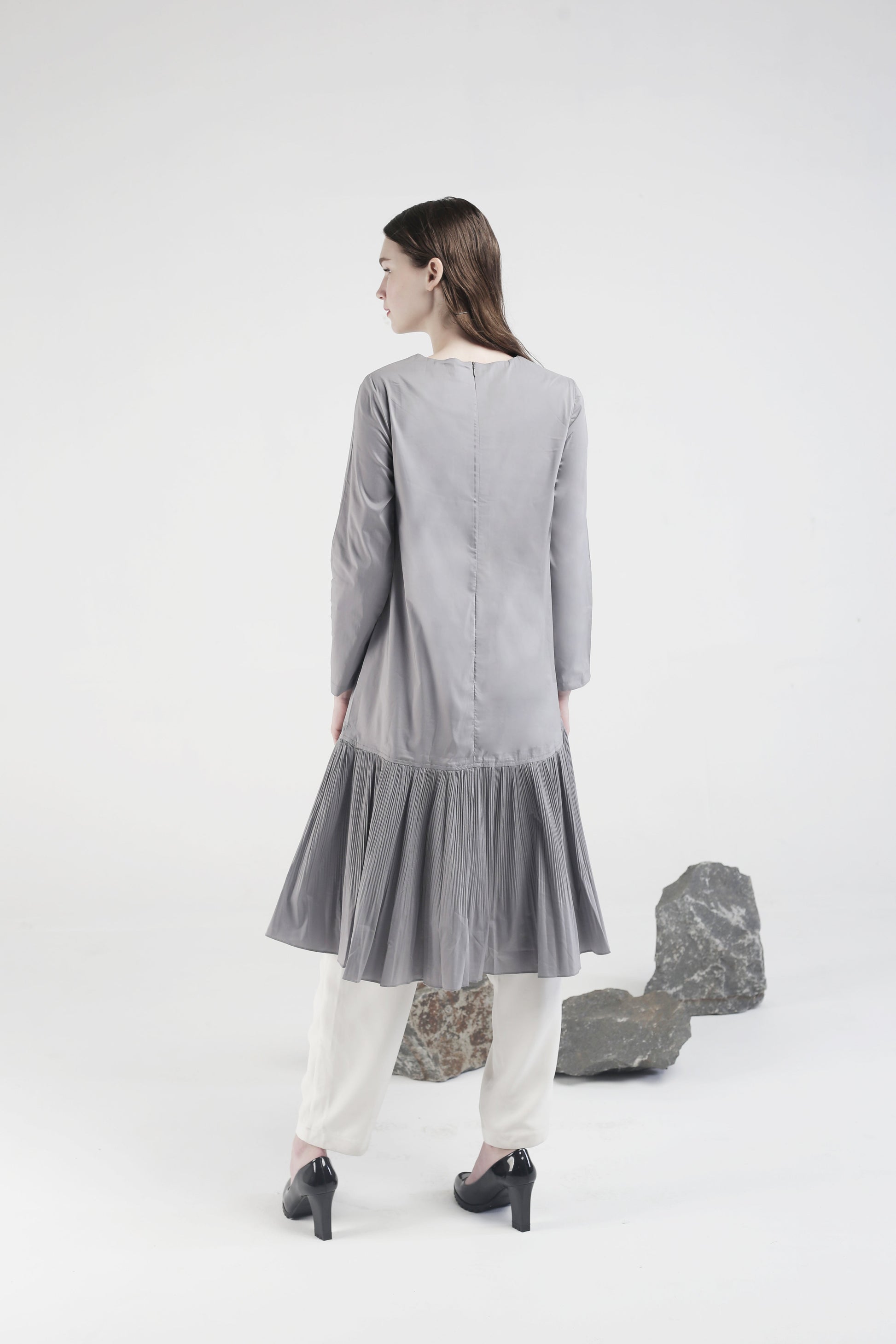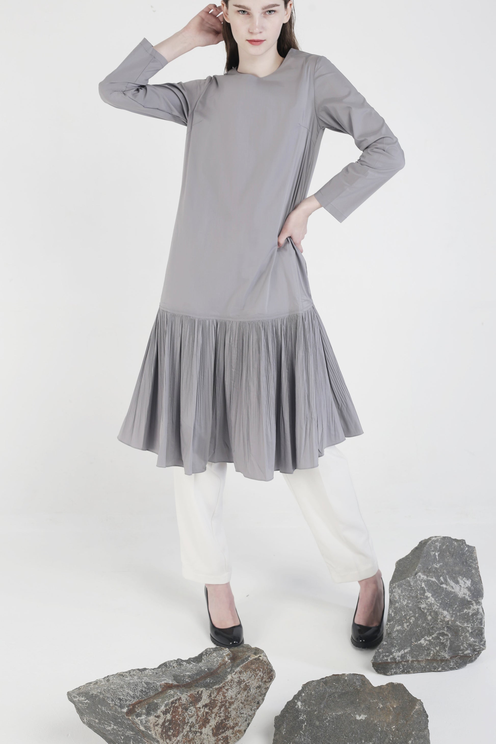 Shara Pleated Dress Grey