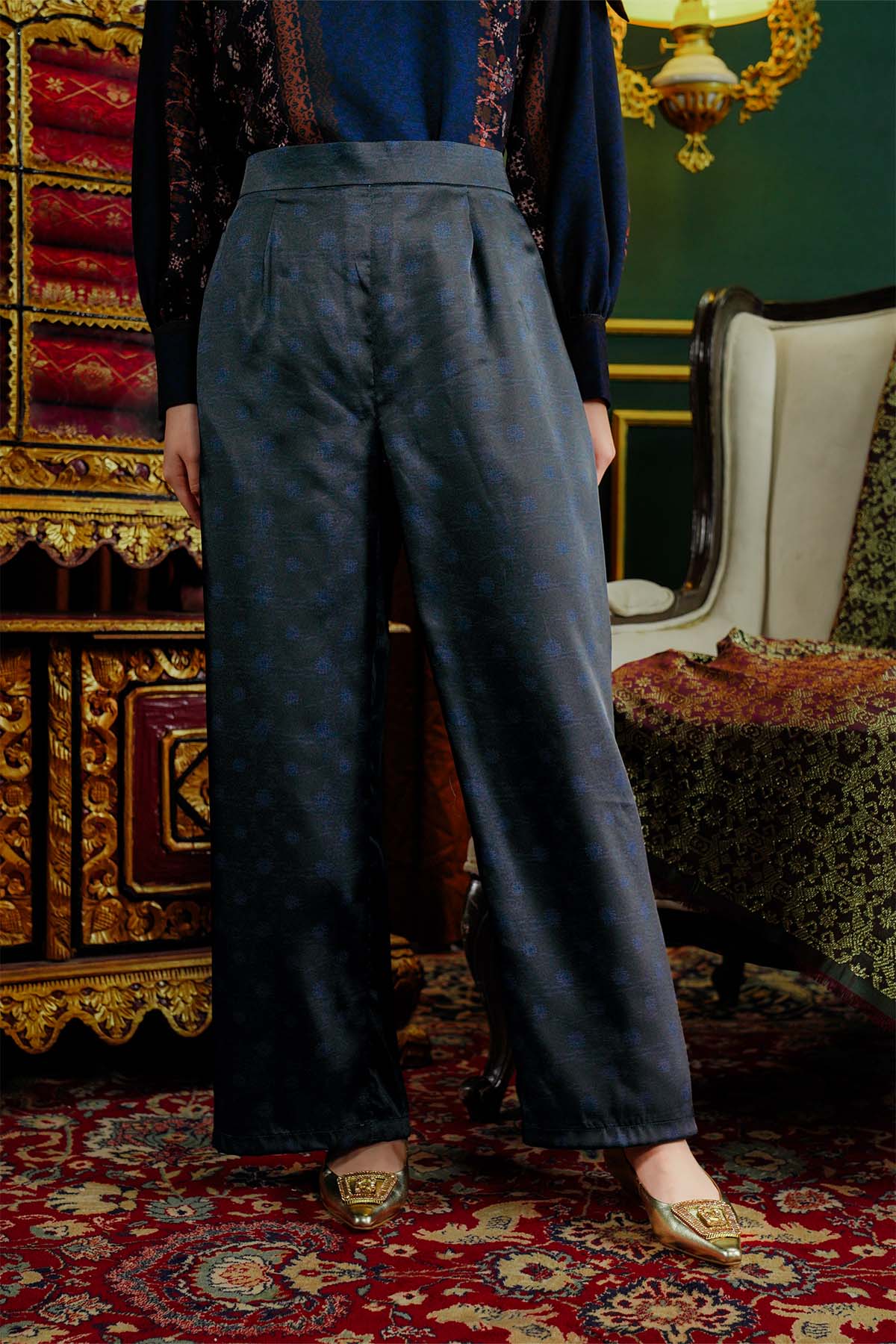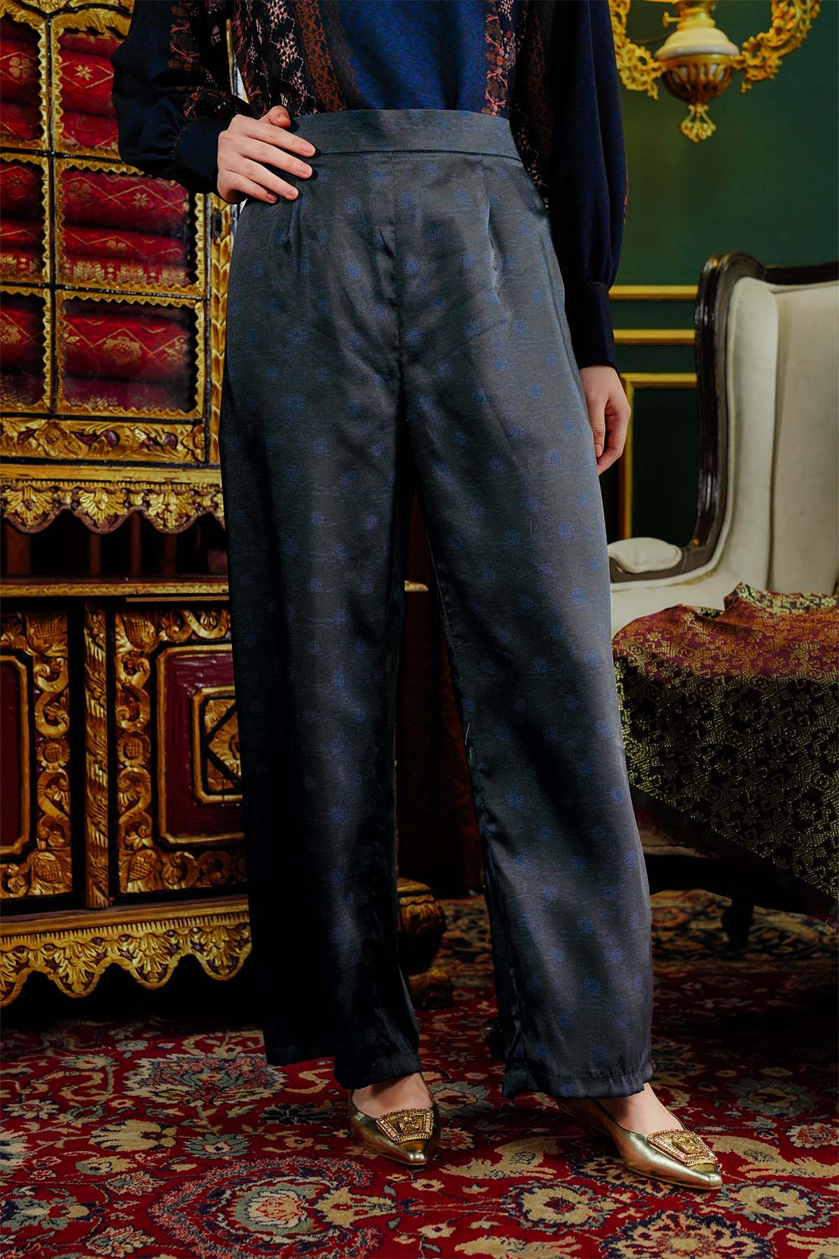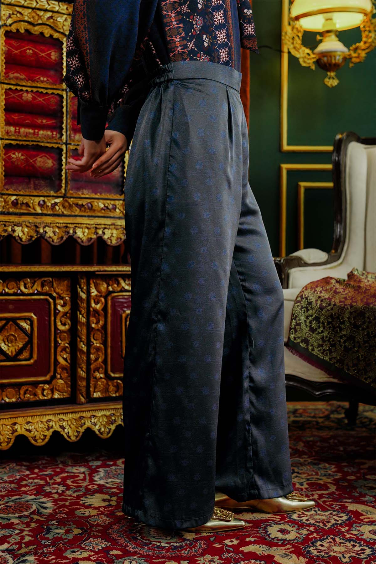 Benang Pelangi Beranti Satin Pants - Navy