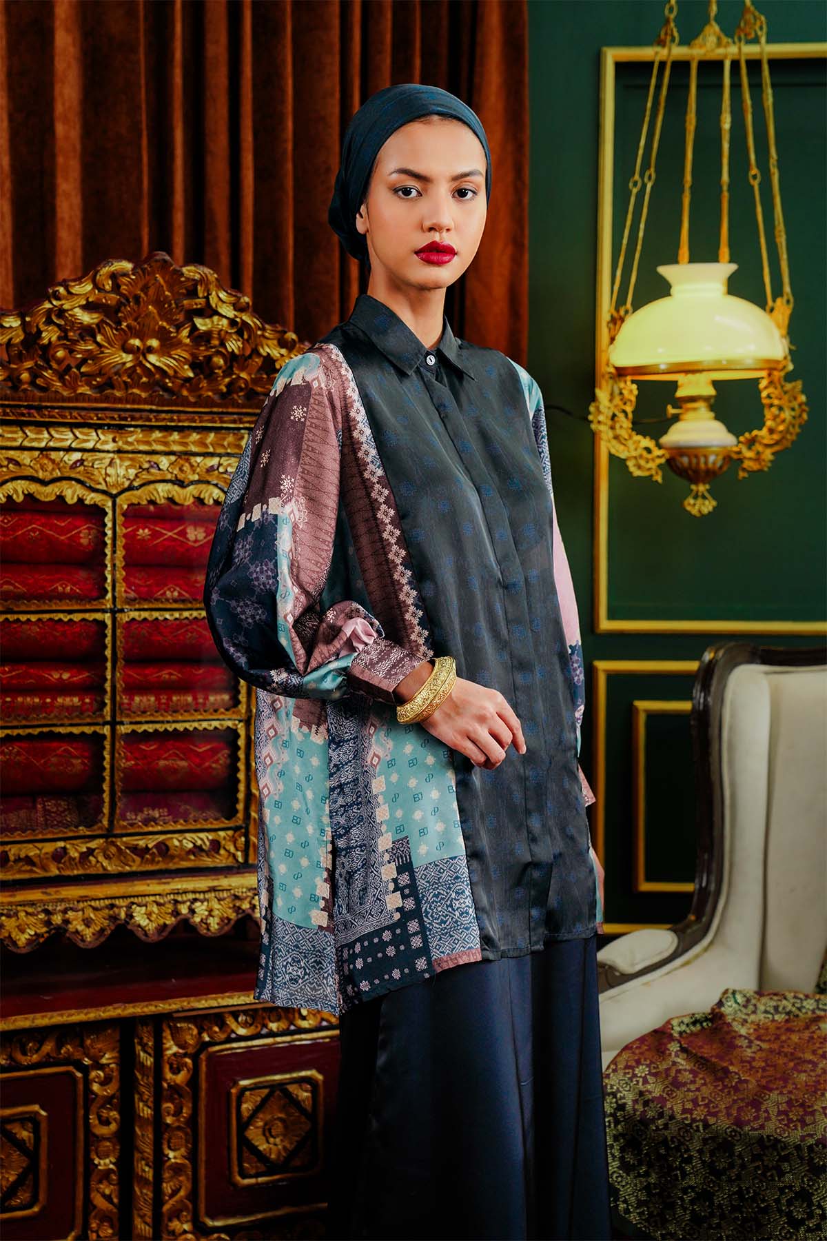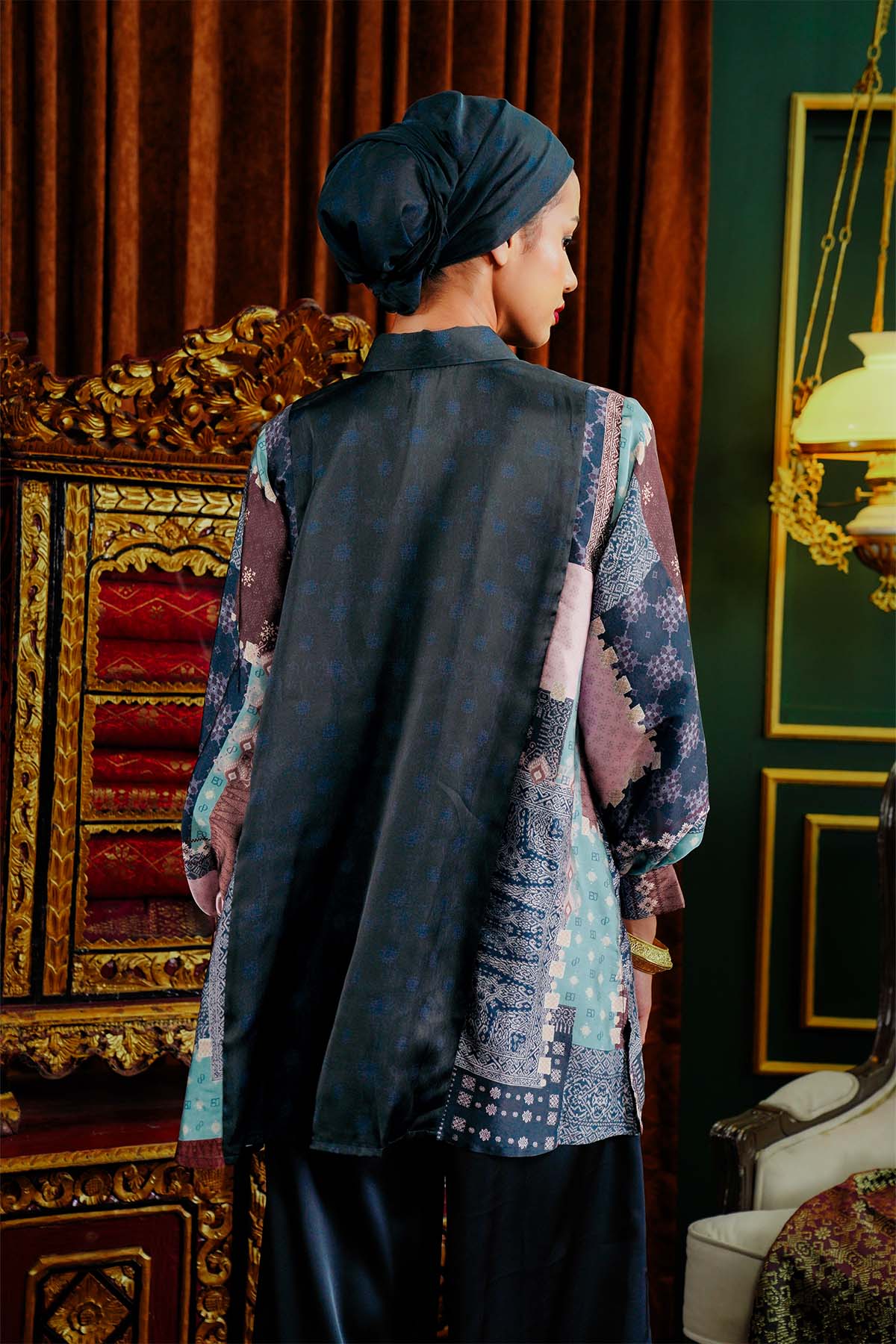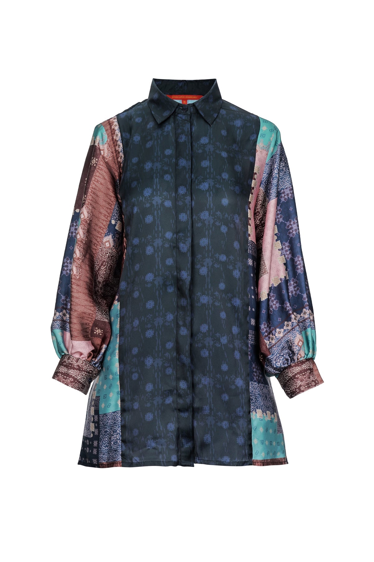 Benang Pelangi Bungo Patchwork Shirt - Navy