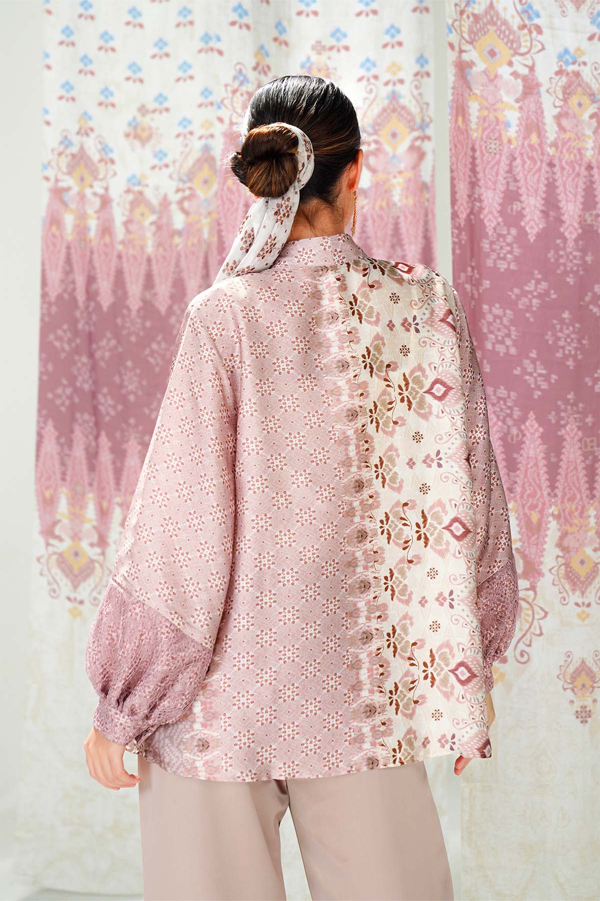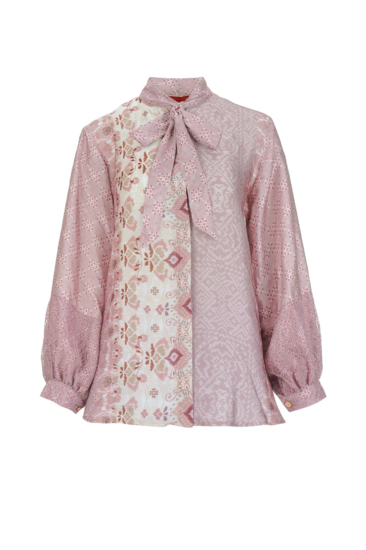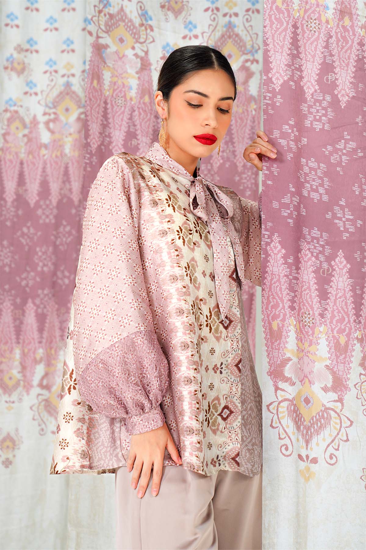 Benang Pelangi Nyayu Shirt With Tie Bow - Dusty Rose