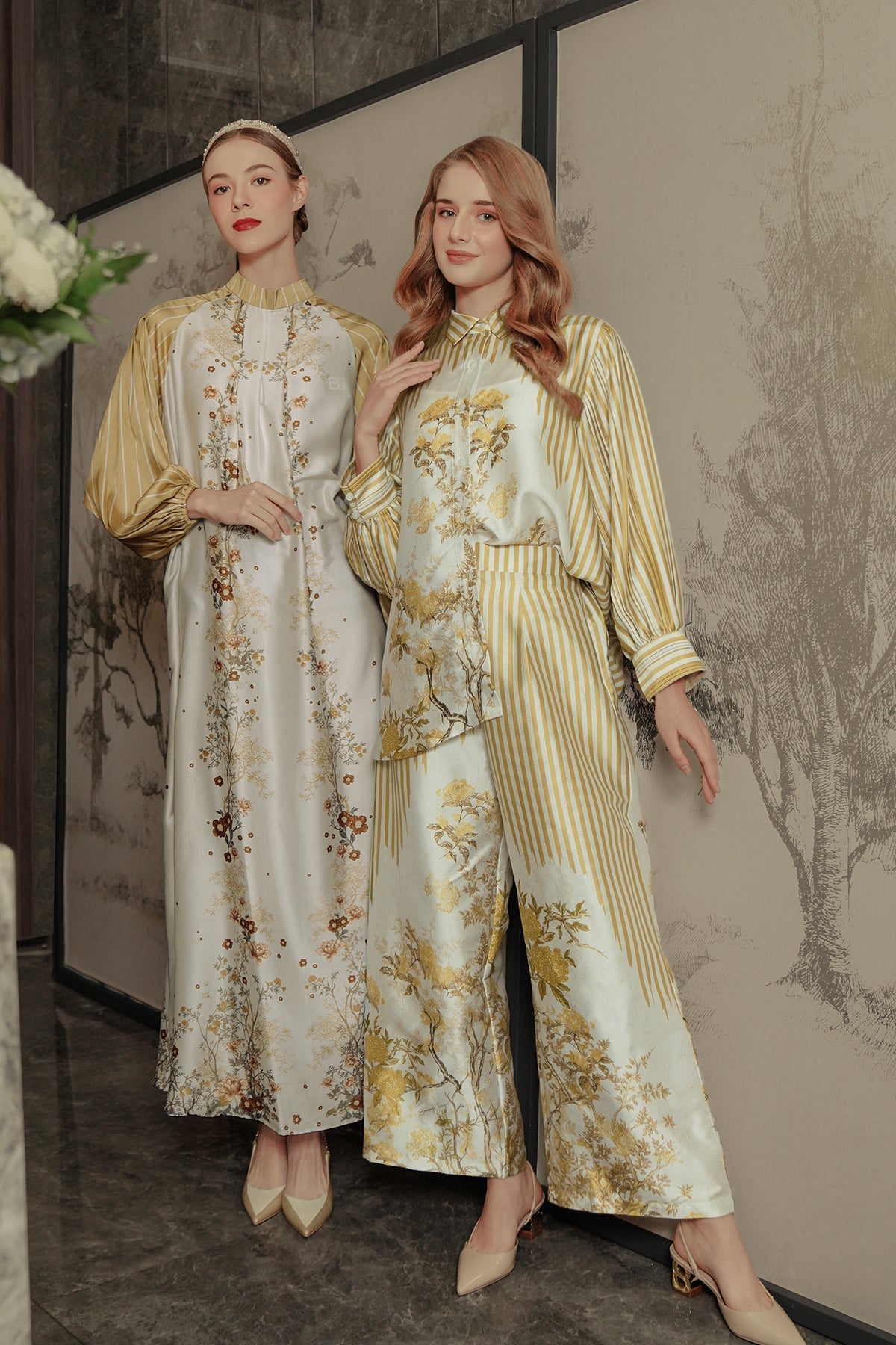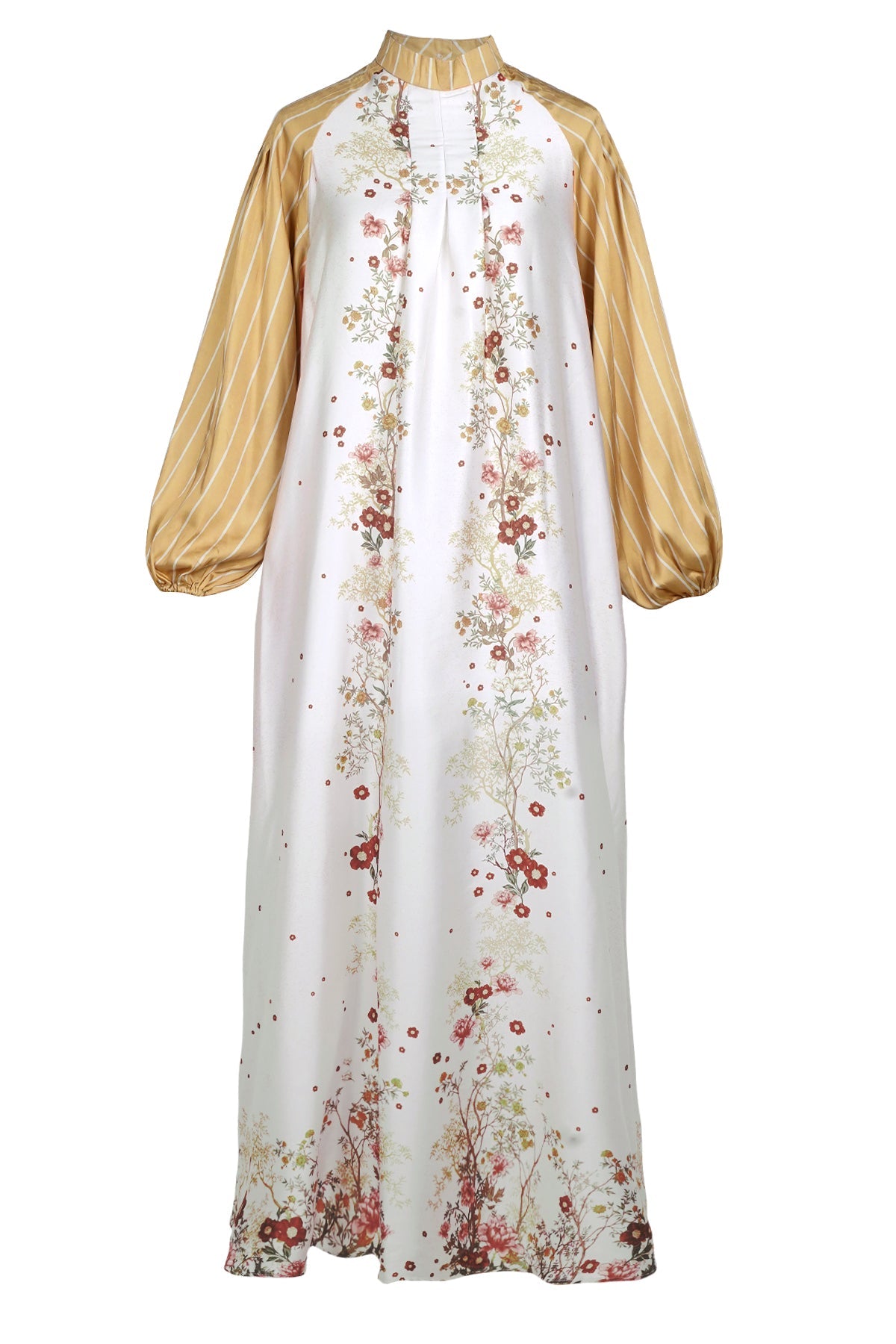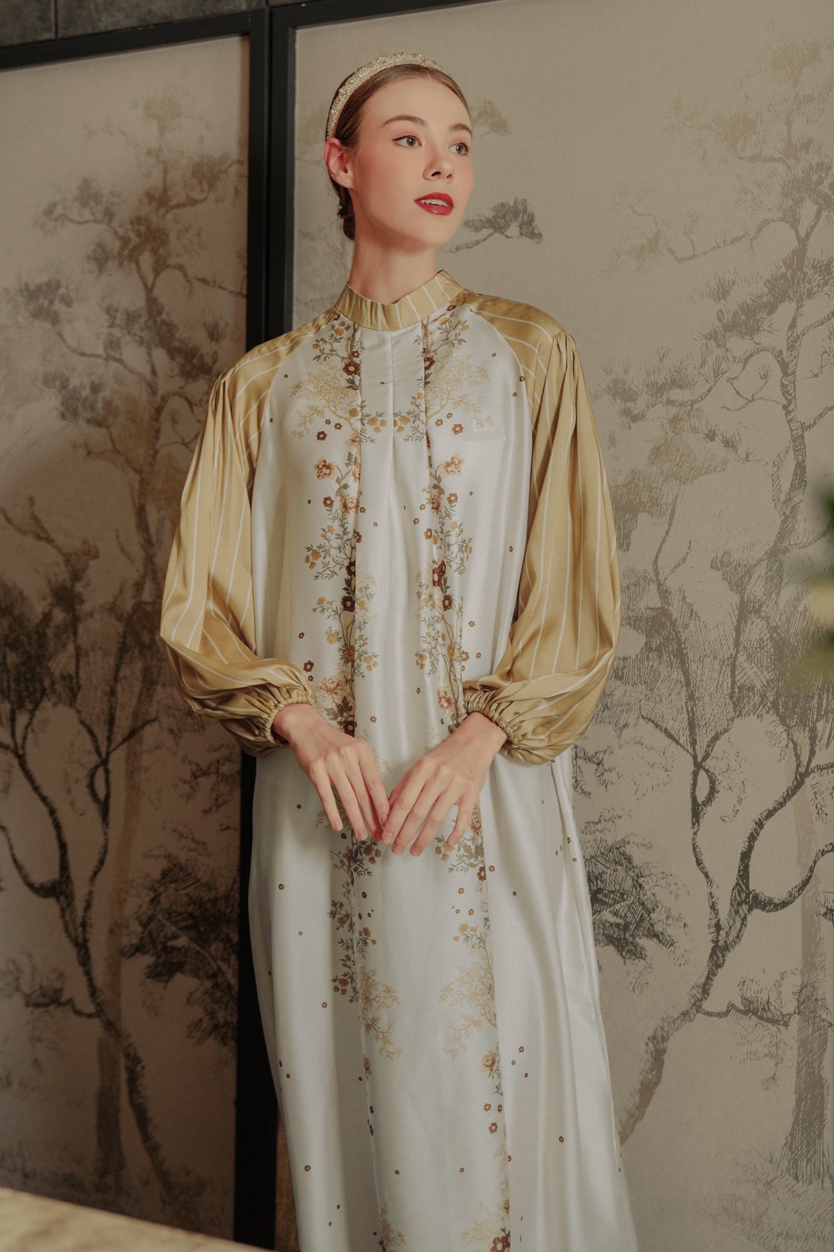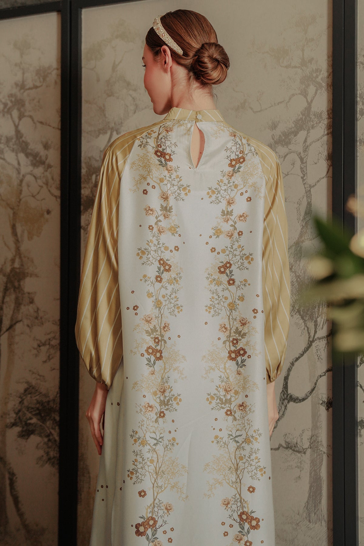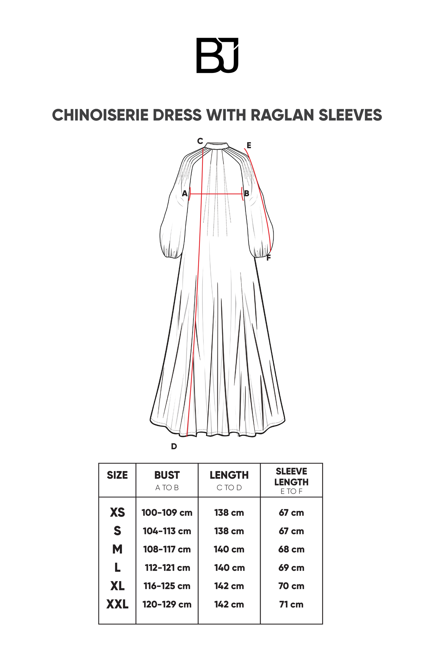 Chinoiserie Dress with Raglan Sleeves - Gold Cream