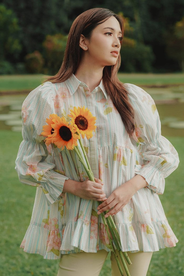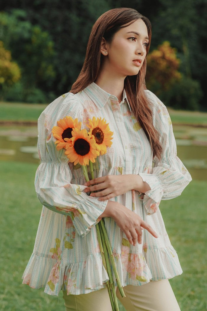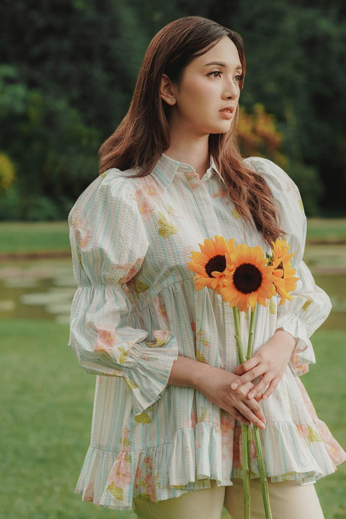 Diantha Tiered Ruffle Shirt - Peach Blue