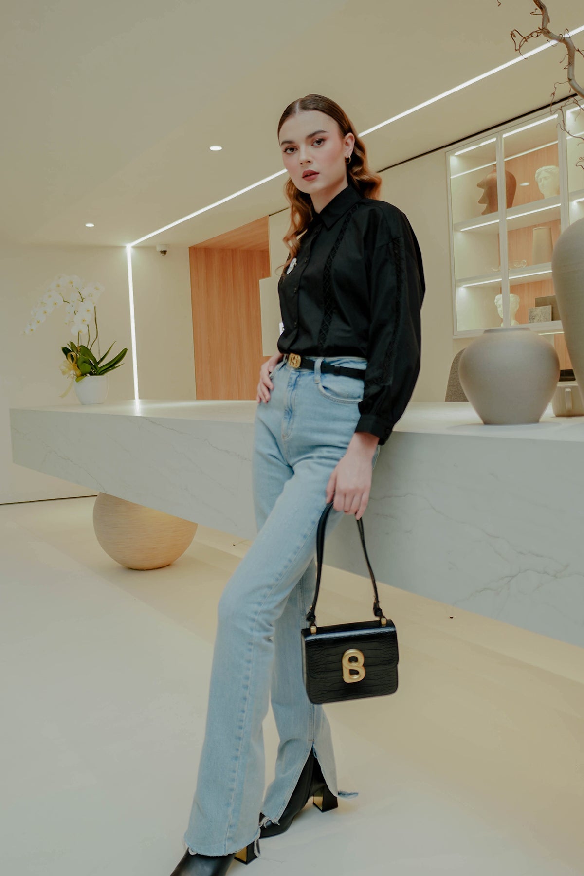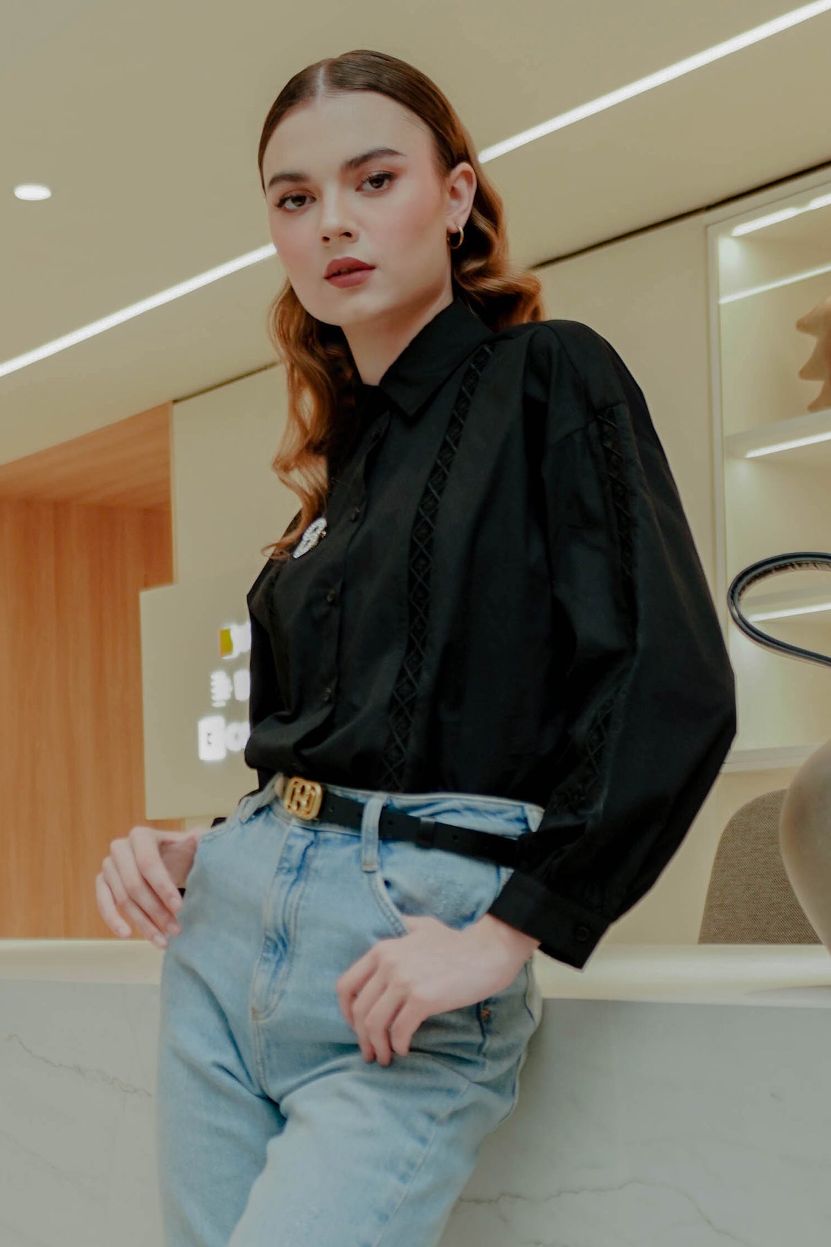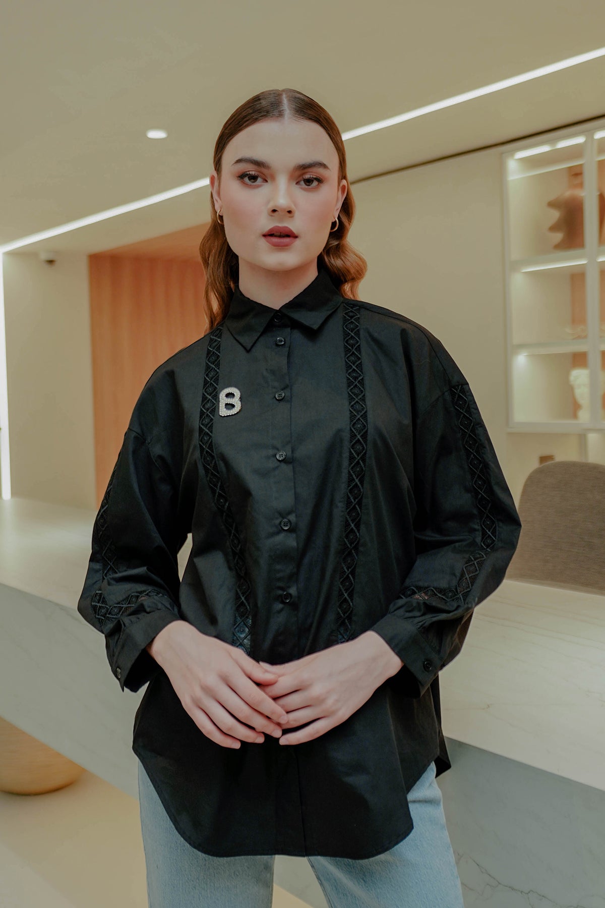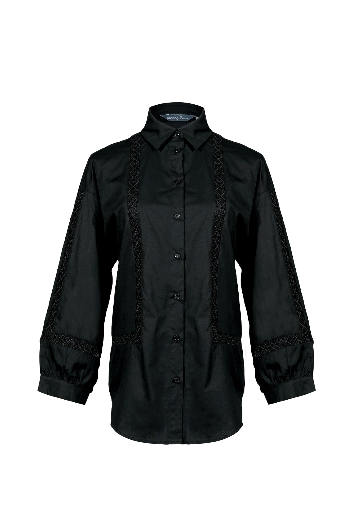Geometric Embroidery Shirt - Black