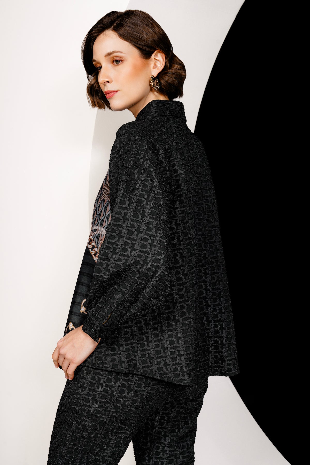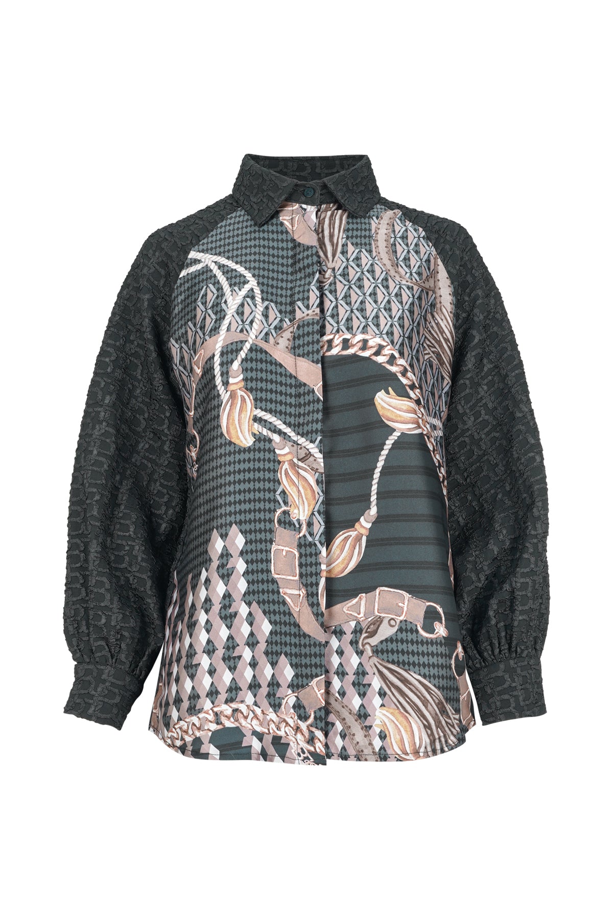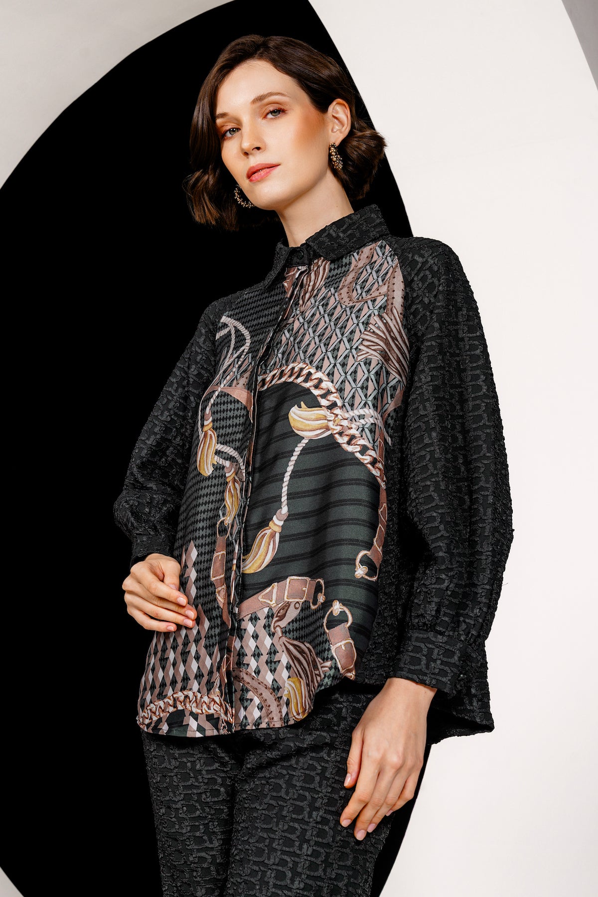 Luminosa Mix Fabric Shirt - Black