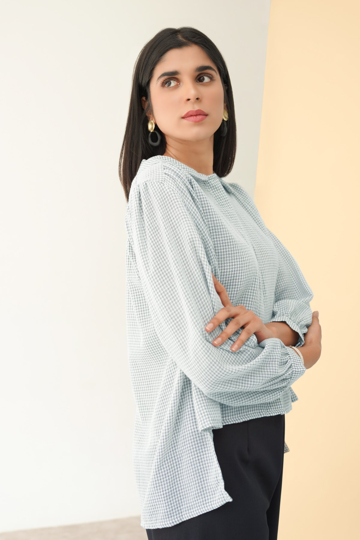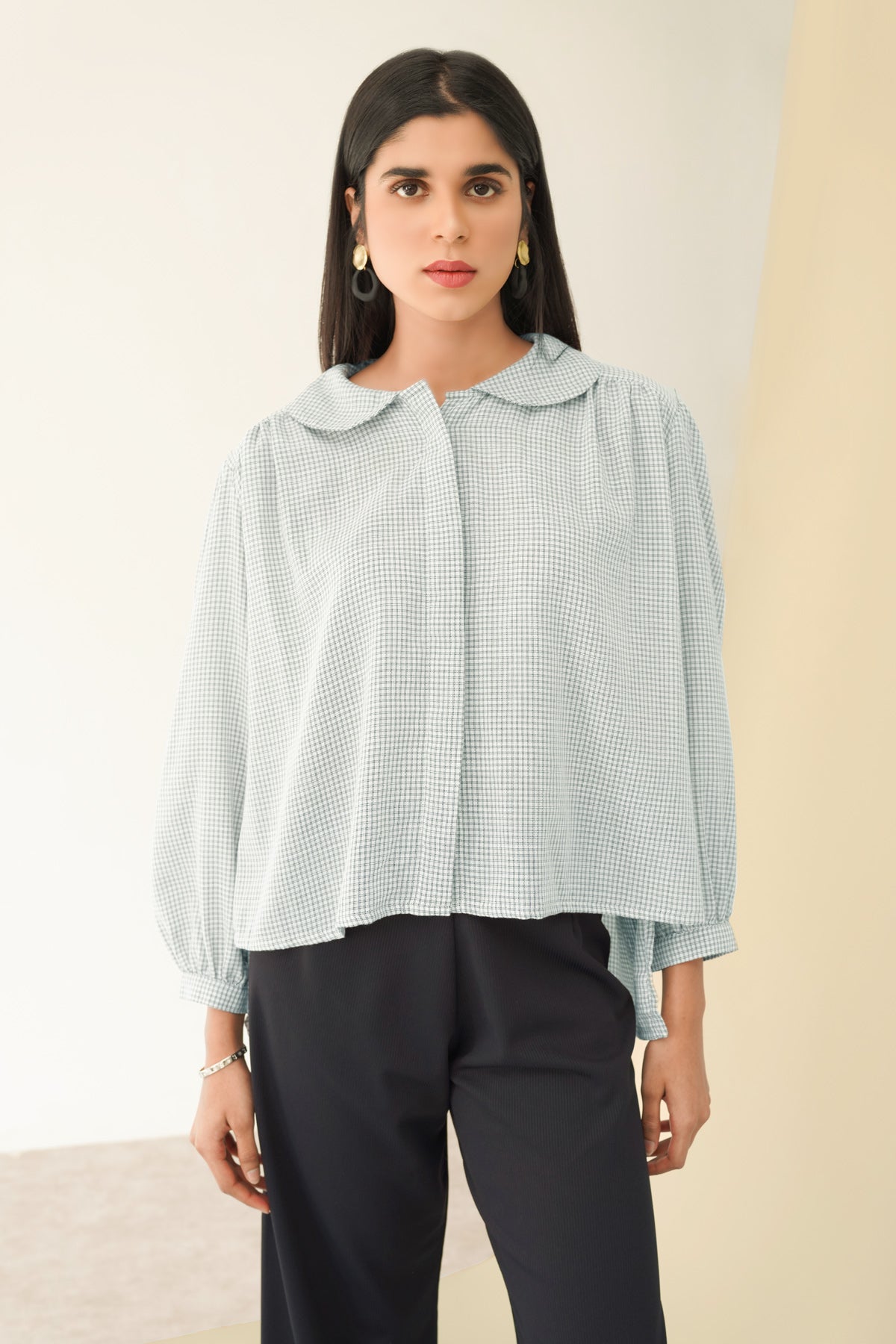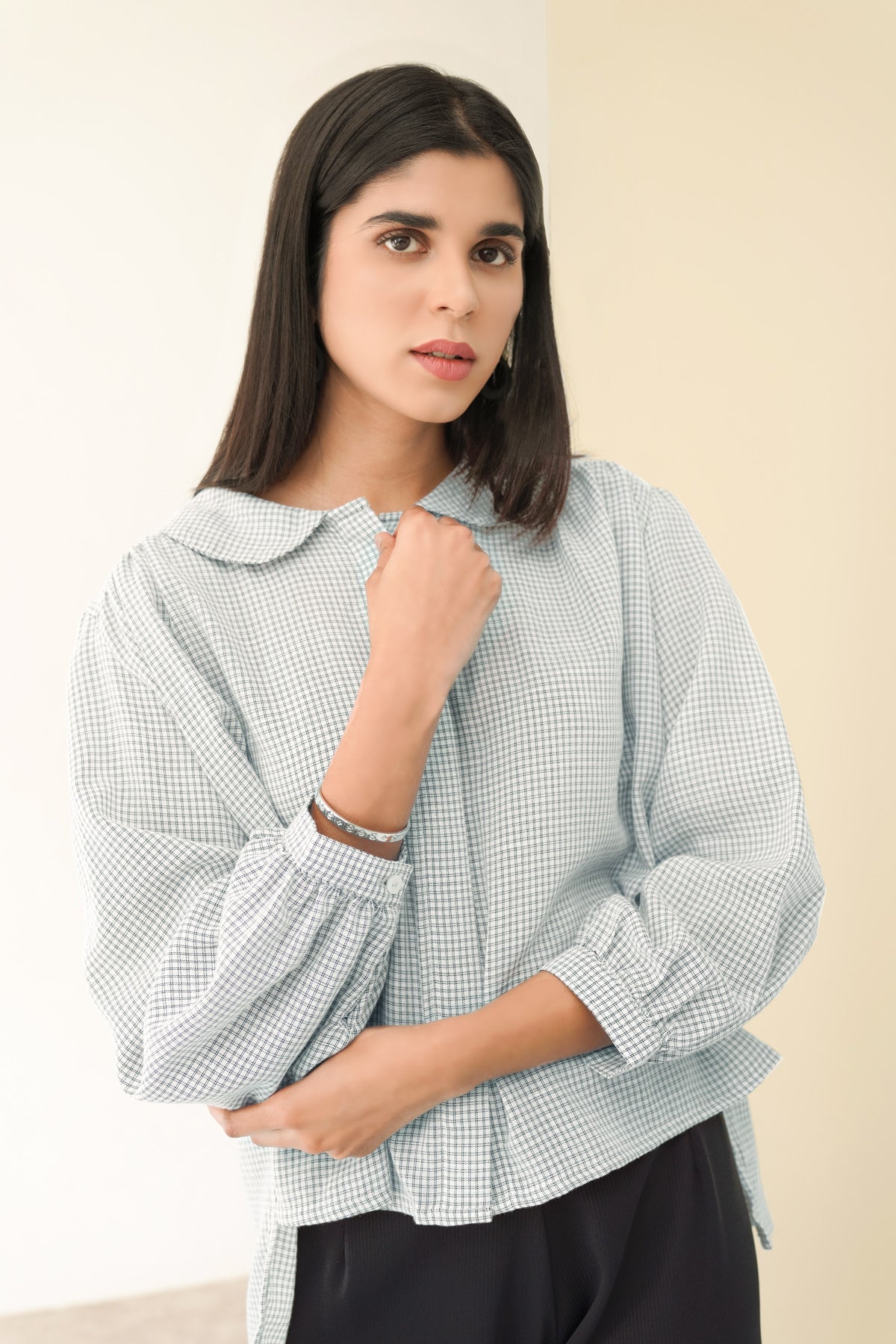Luna Cropped Shirt - White Plaid