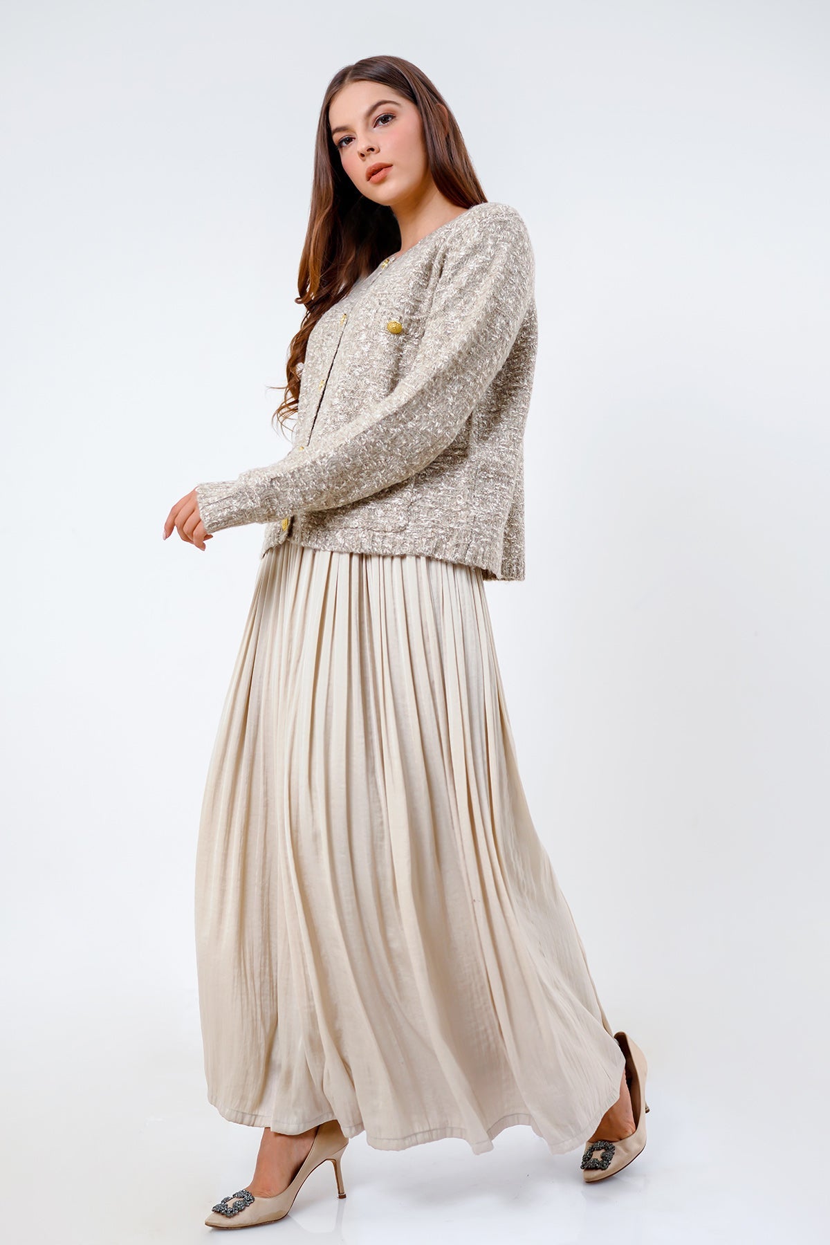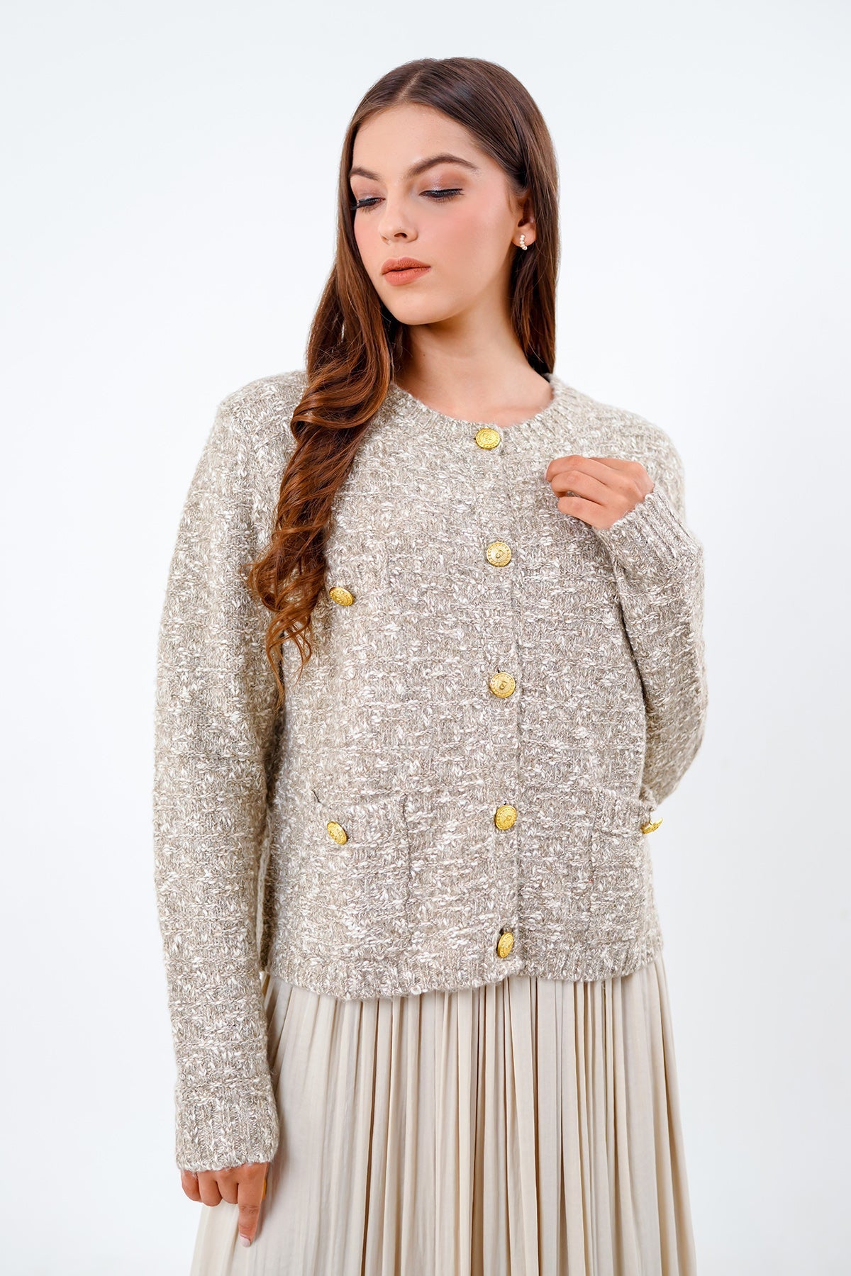 Lydia Tweed Cardigan - Khaki