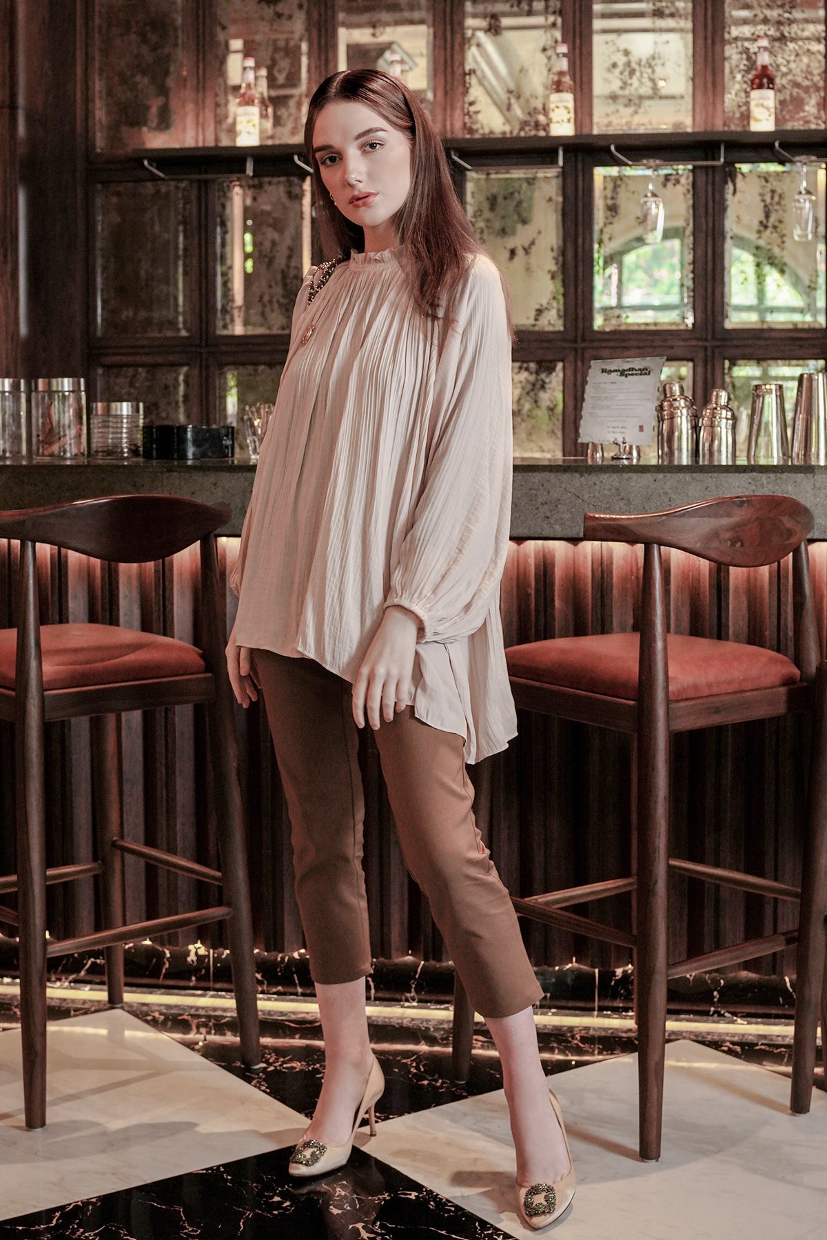 Pleats Blouse - Beige