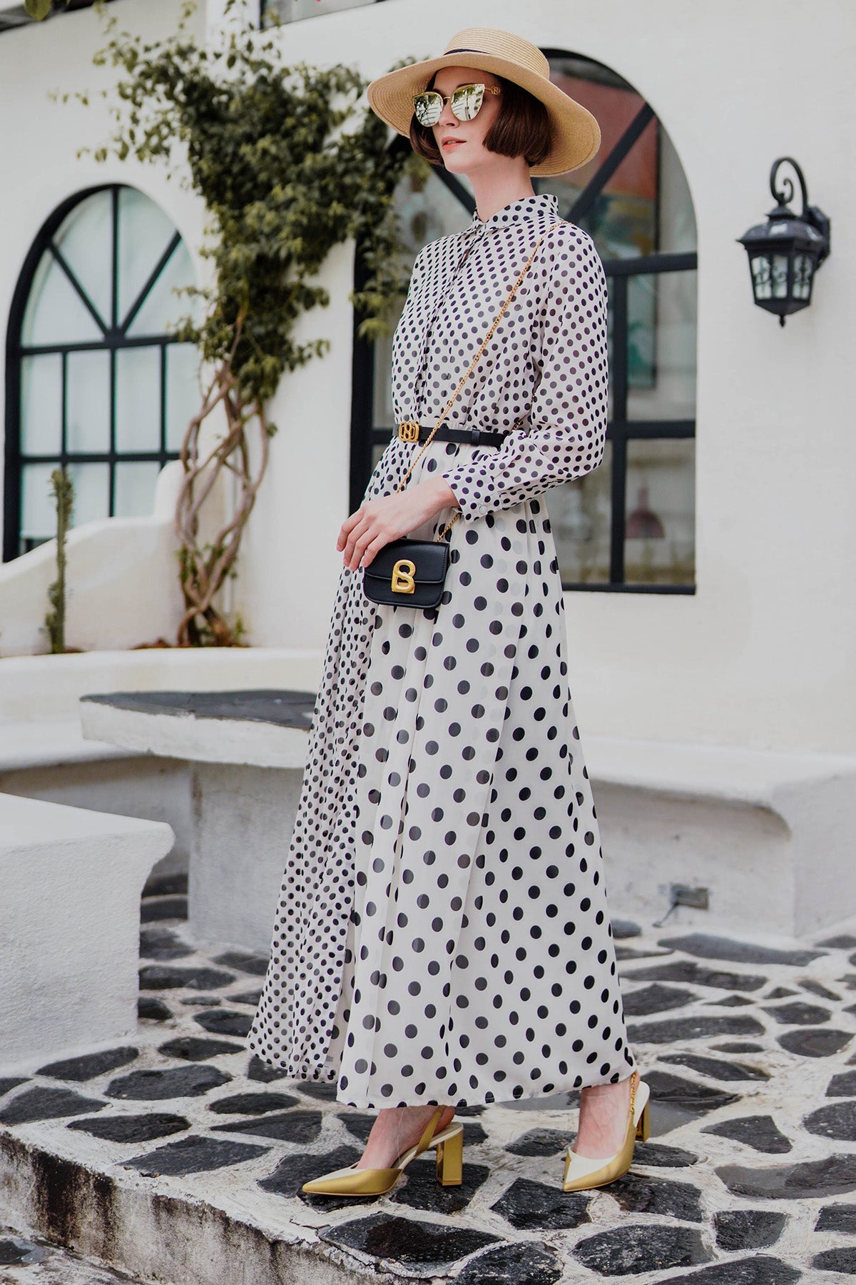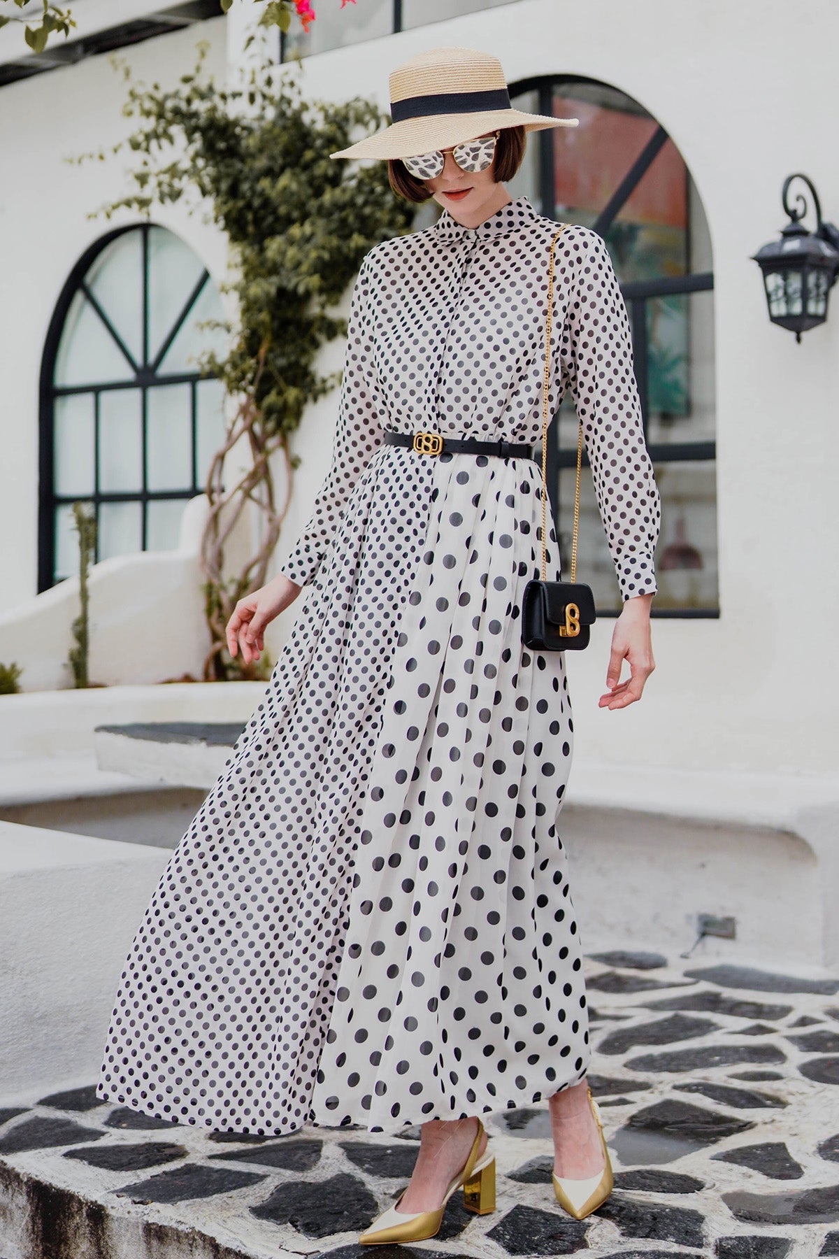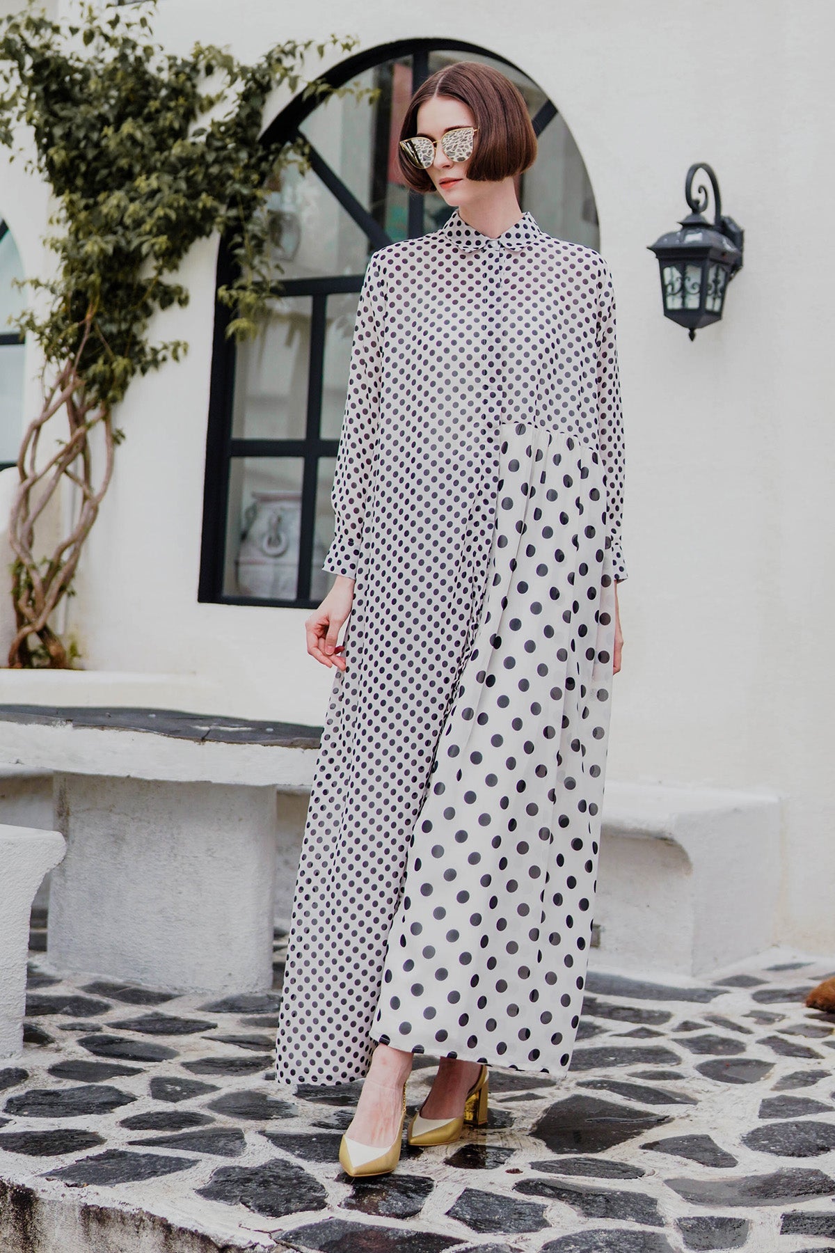 Polka Dot Maxi Shirt Dress - Broken White