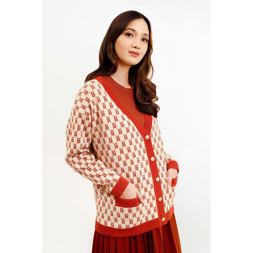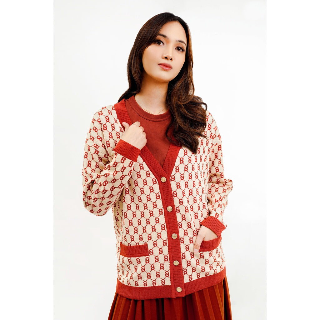 Signature Monogram Cardigan - Red Velvet