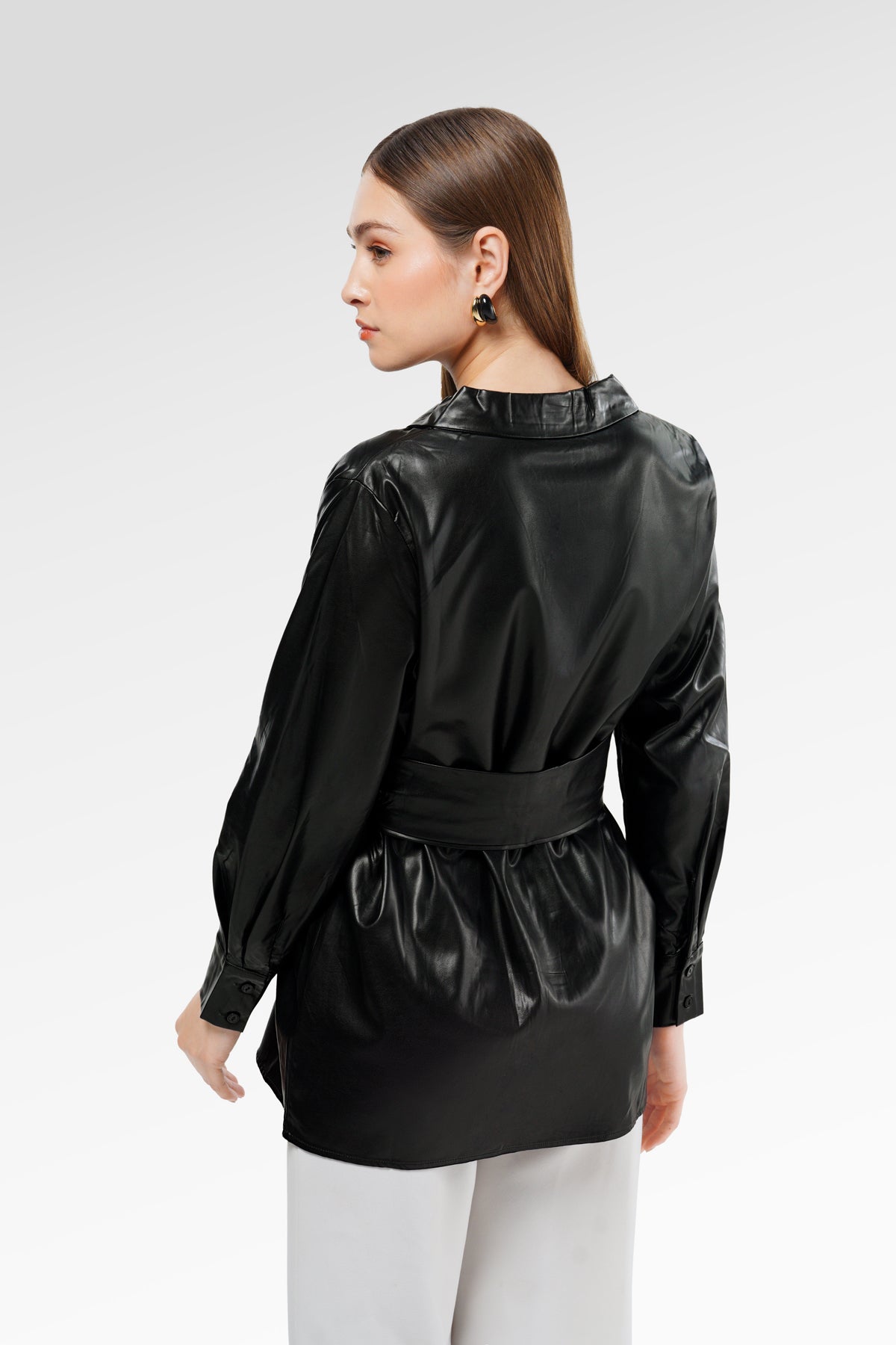 Stella Wrap Faux Leather Shirt - Black