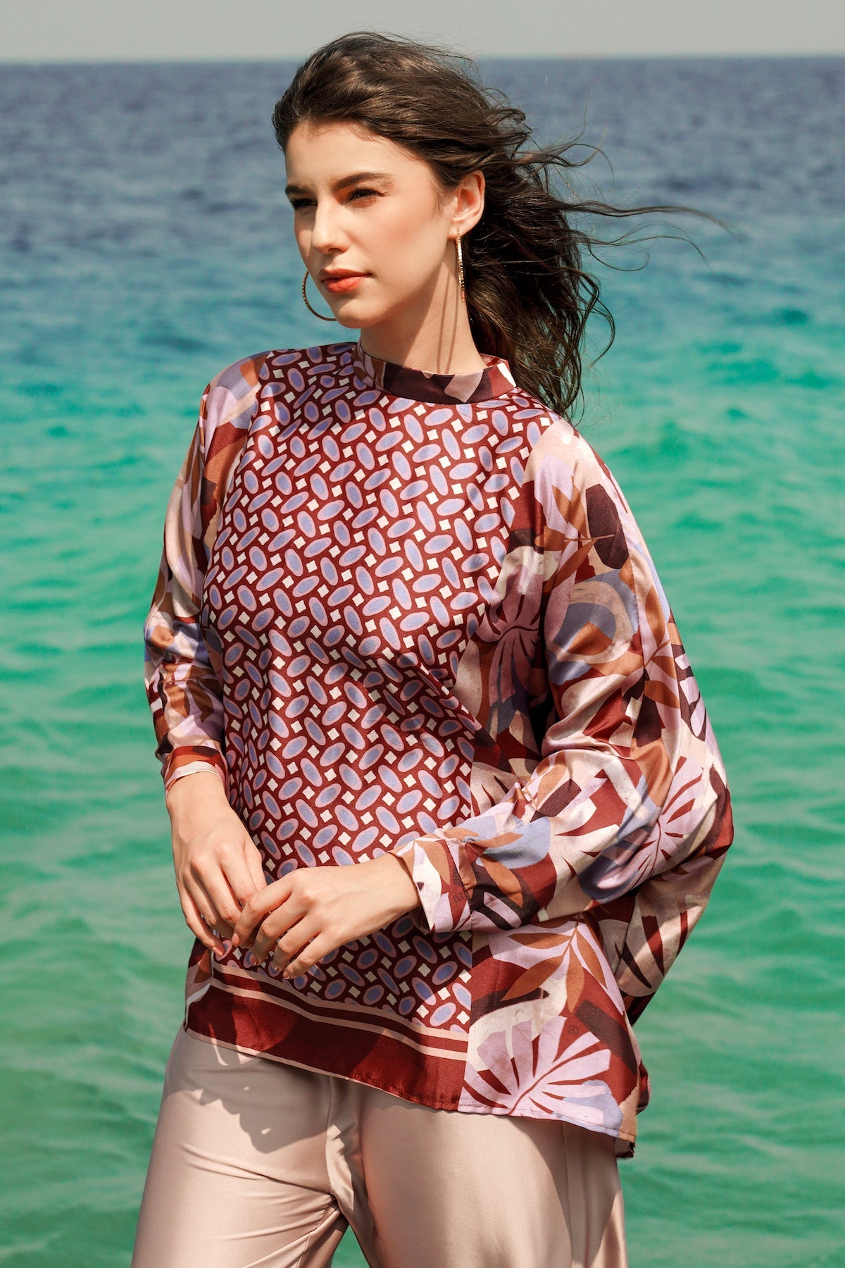 Sun-Kissed Batwing Blouse - Brick
