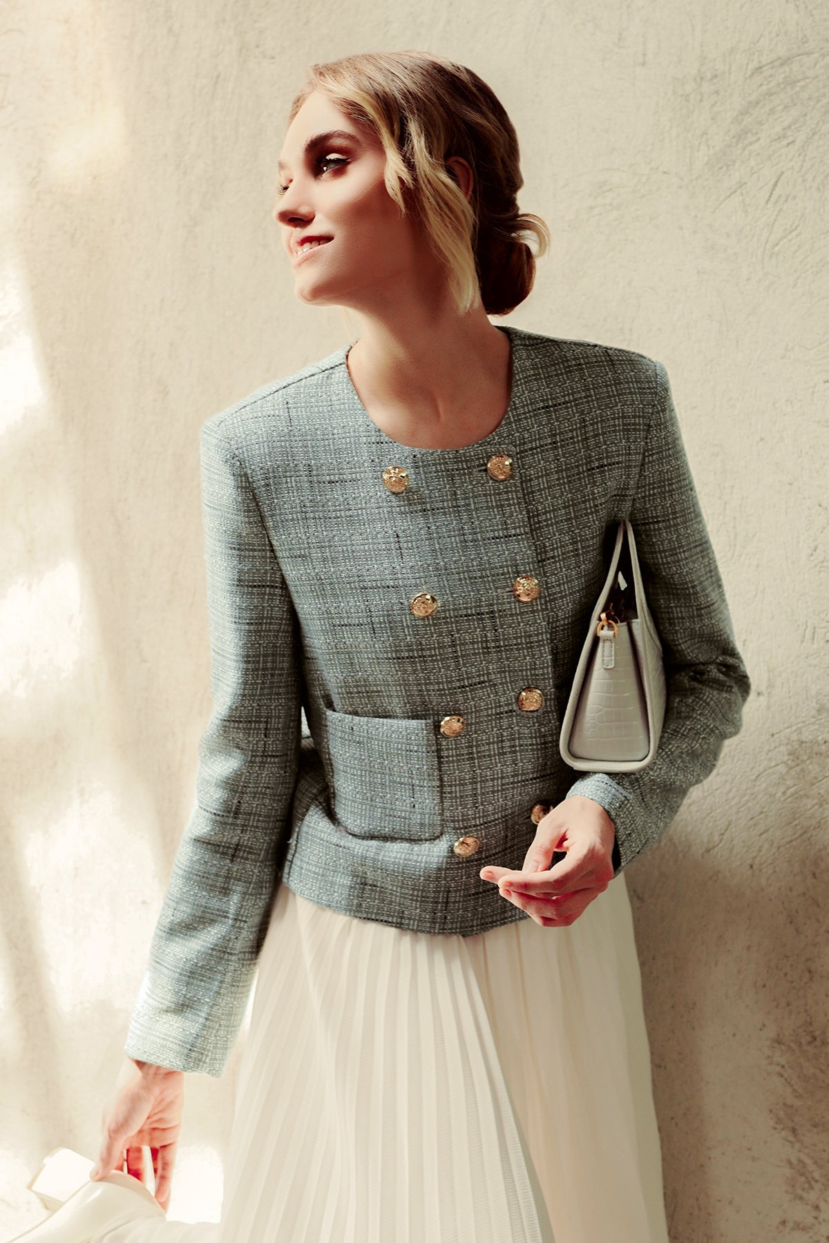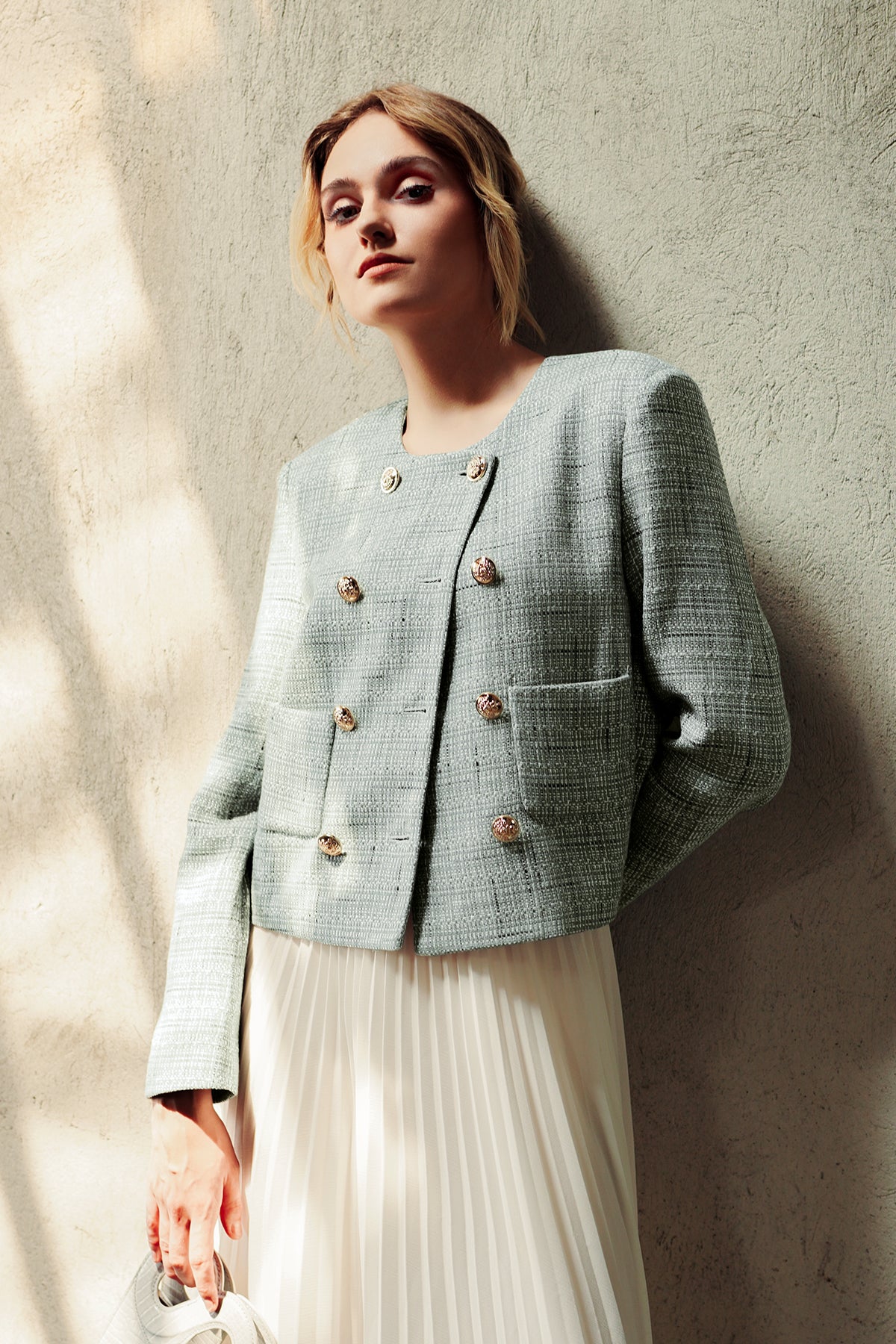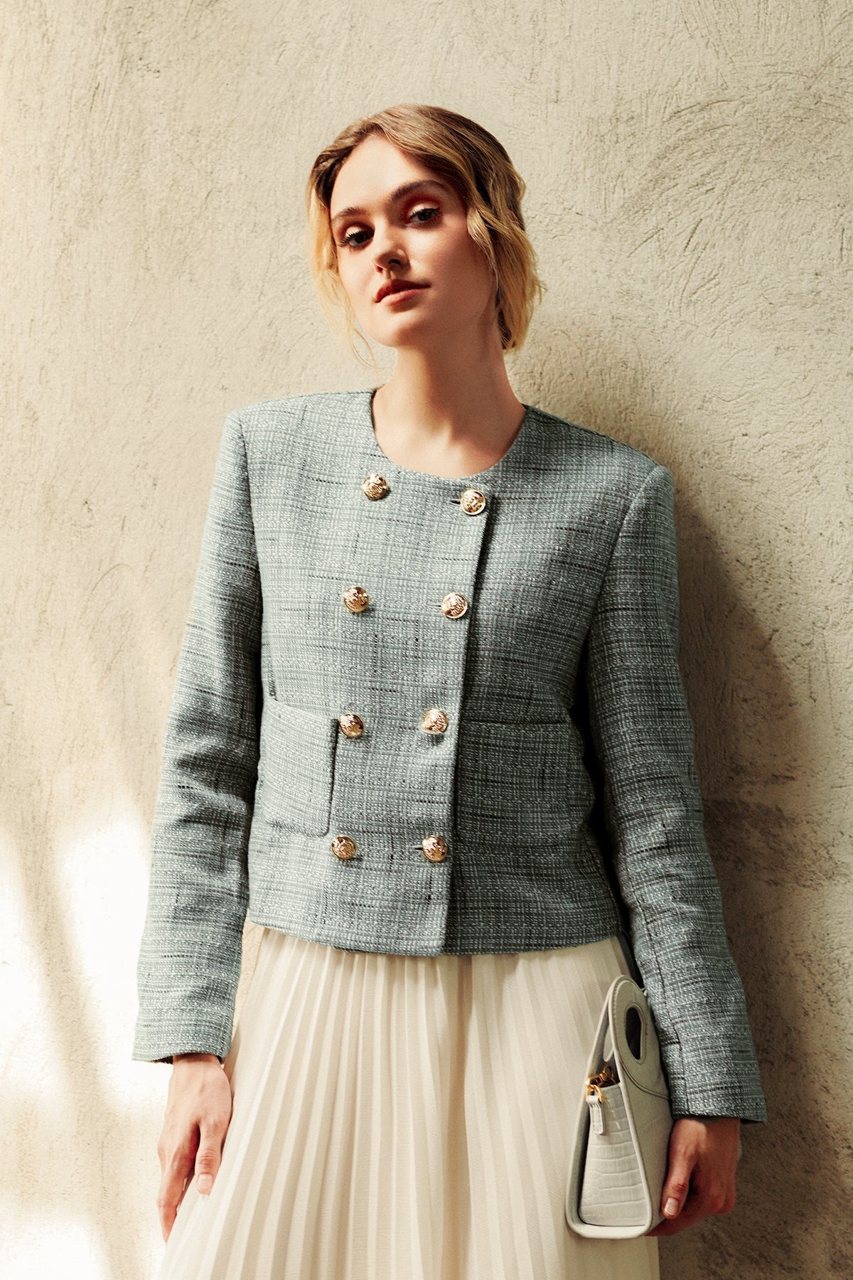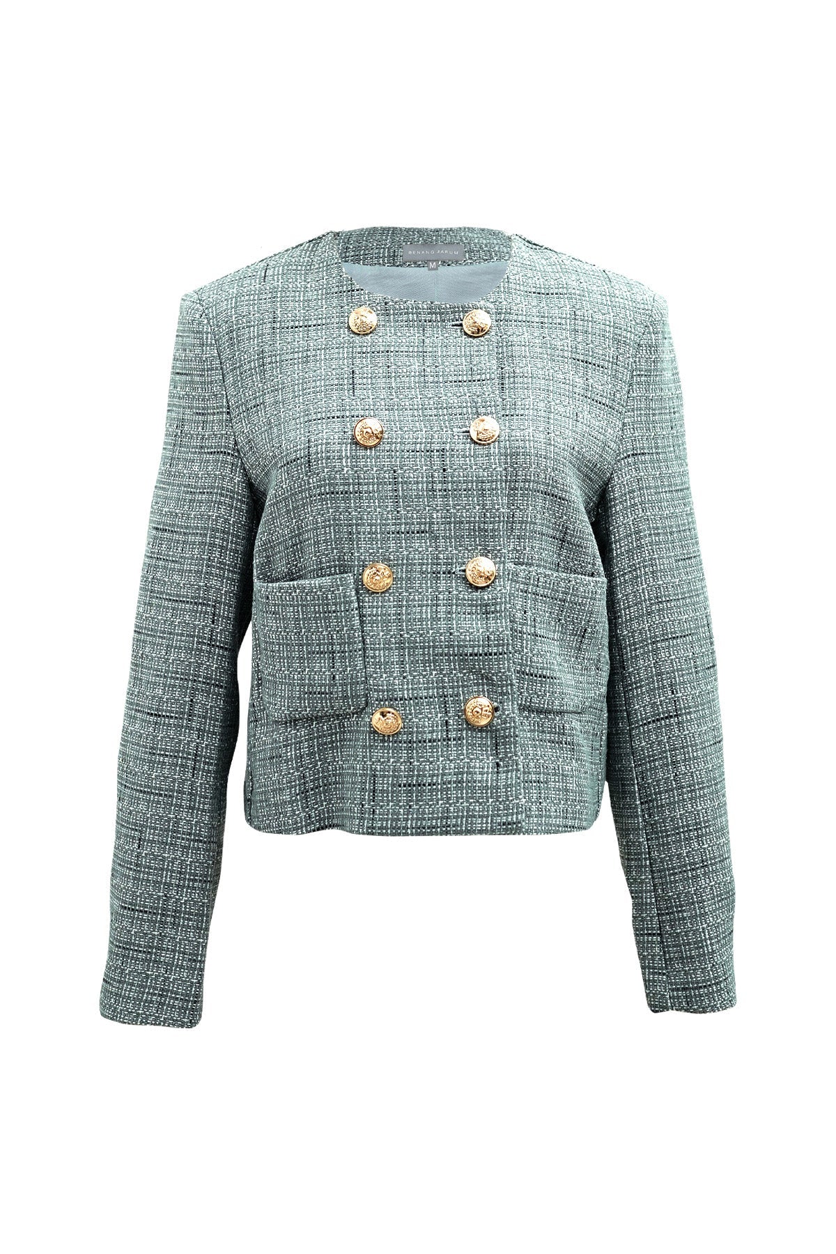 Tweed Crop Blazer - Aqua